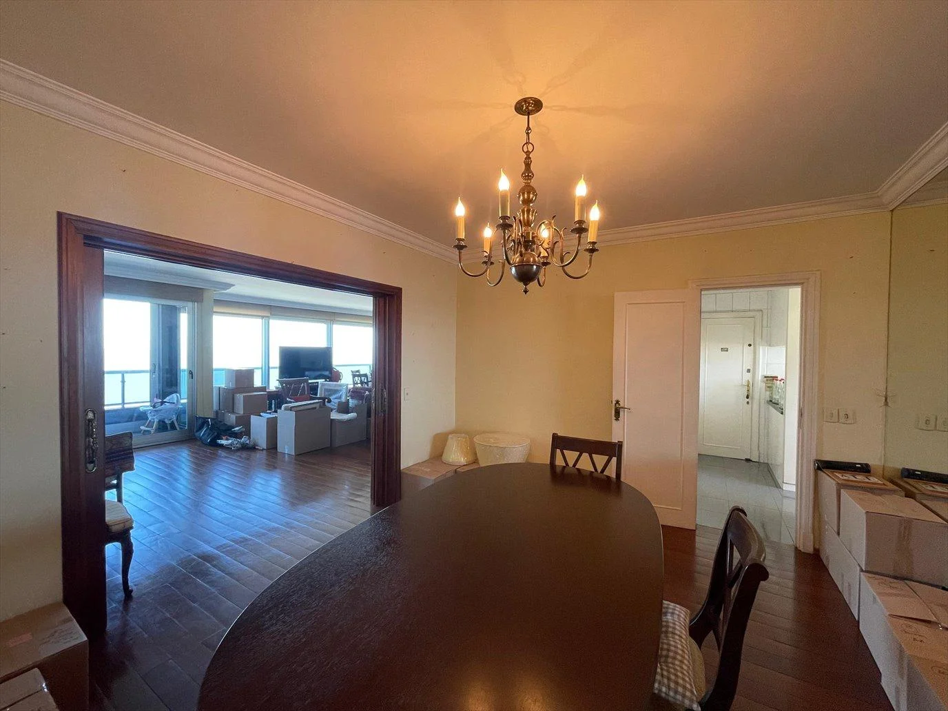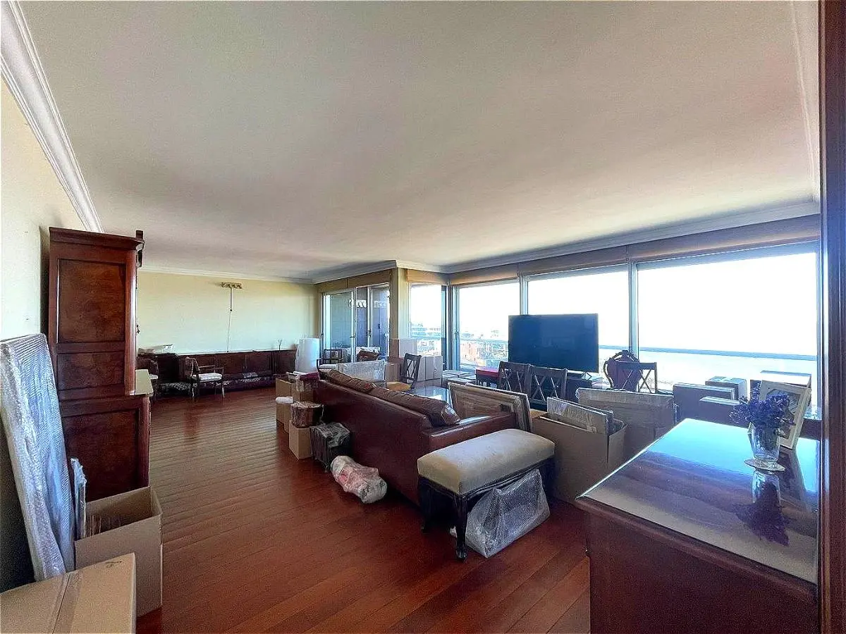 Apartamento de categoría en primera línea al mar, sobre la Rambla en pleno Pocitos Nuevo con extraordinarias vistas despejadas al agua.Hermosa planta de construcción tradicional, con pisos de lapacho, aberturas nuevas (con doble vidriado), carpintería de calidad y living apaisado con vista al mar.