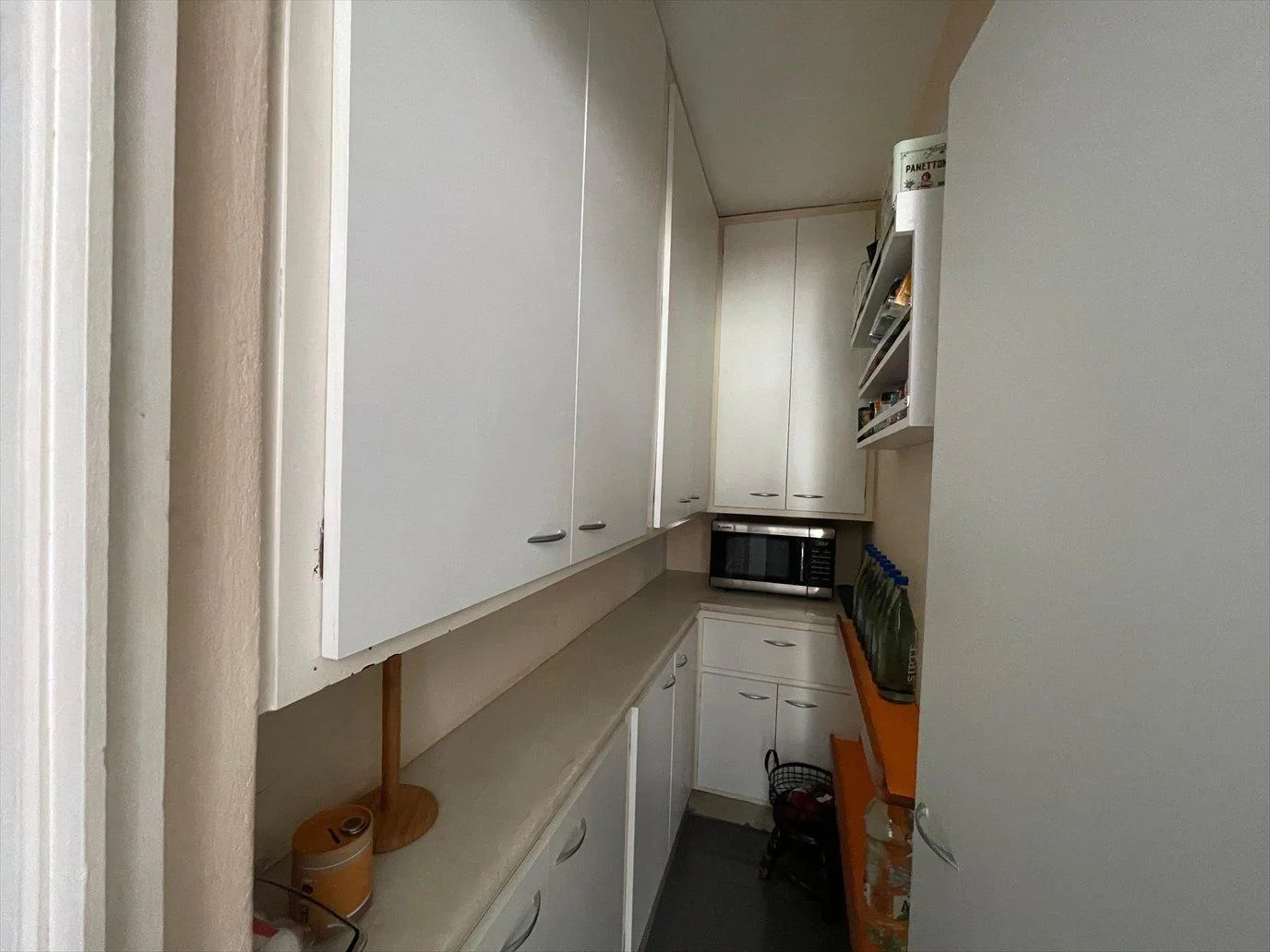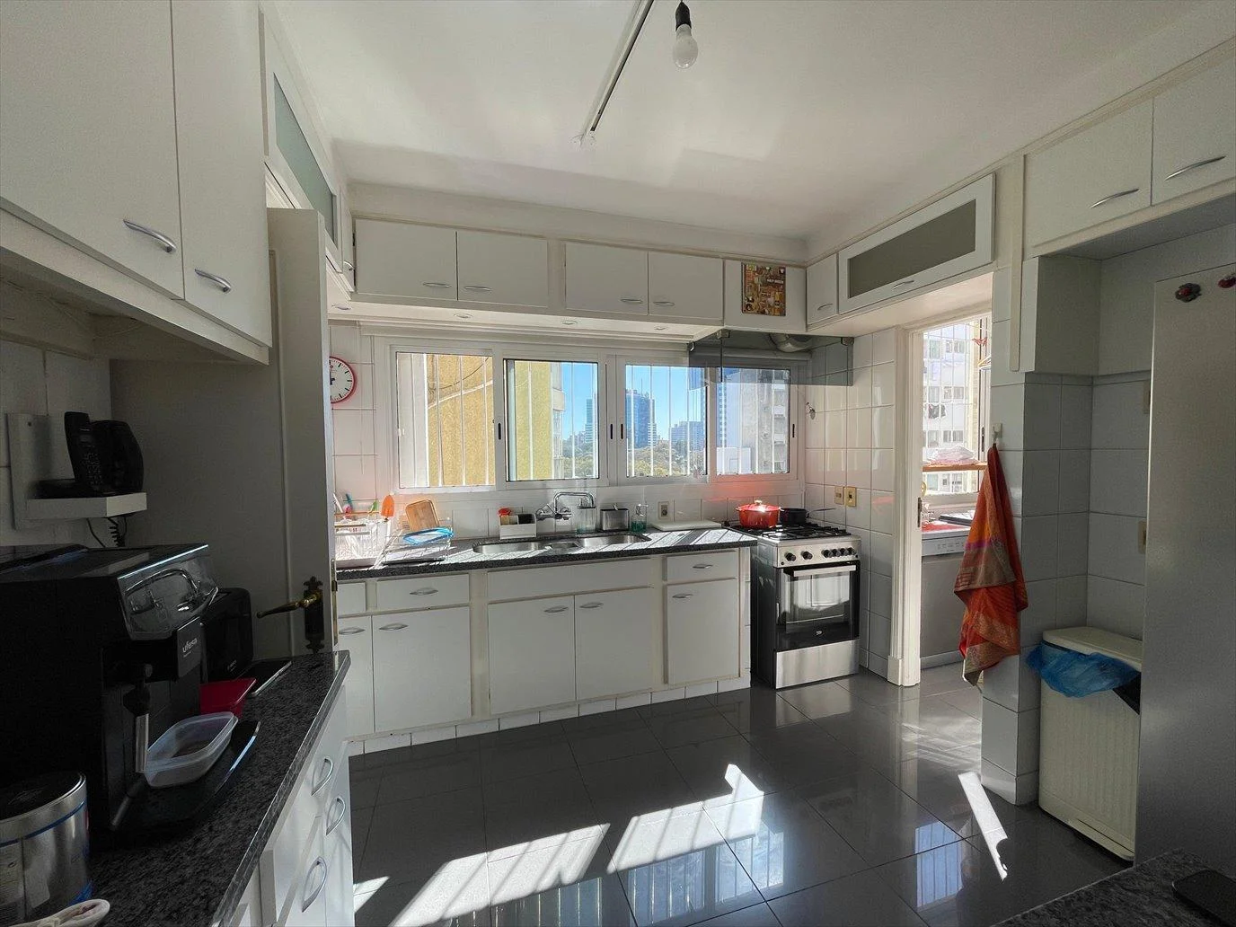 Living de gran tamaño al frente con escritorio independiente y terraza cerrada, comedor de buen tamaño, toda el área con piso de lapacho. Cocina definida con gran alacena, y doble mesada. Lavadero grande, dormitorio de servicio completo.
