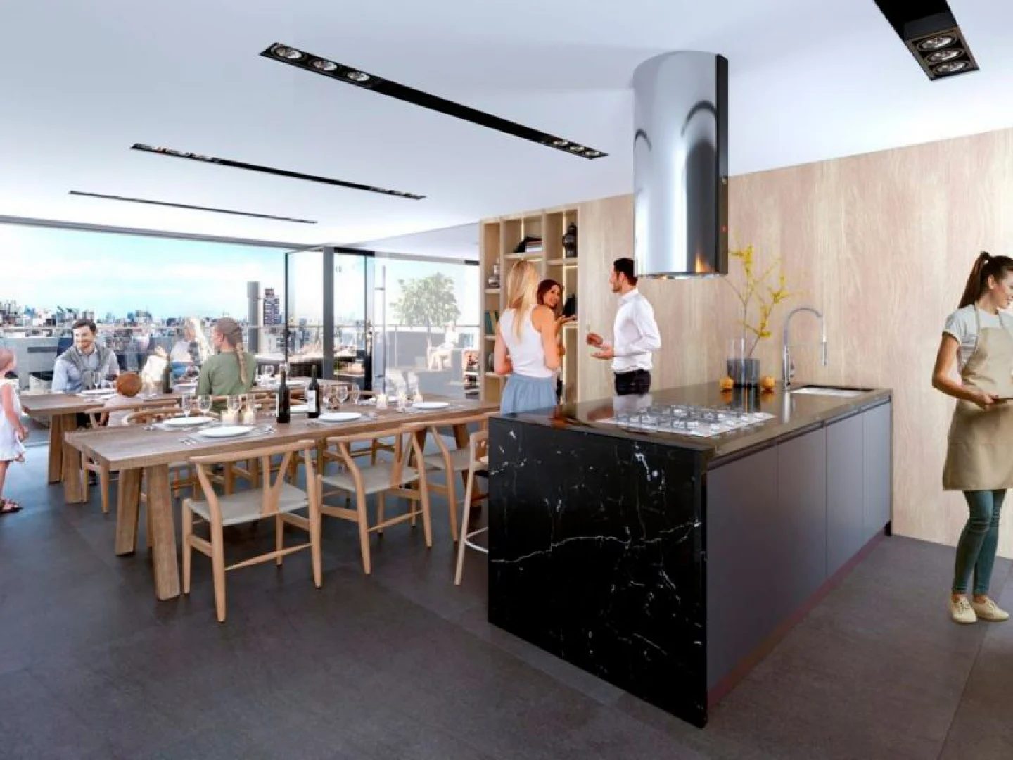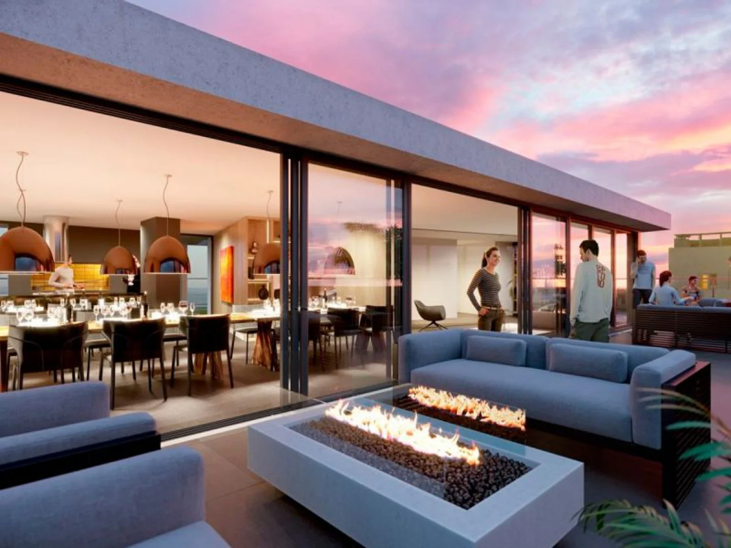Living comedor con estufa y acceso a terraza, cocina integrada, toilette, 3 dormitorios en suite (principal con vestidor y acceso a terraza). Incluye garaje triple(nº 71).