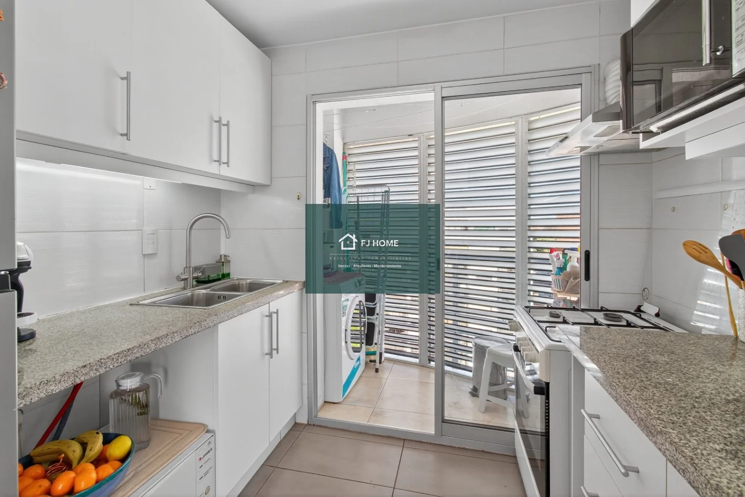 La cocina independiente está equipada con doble mesada y placares aéreos y bajo mesada, además de contar con salida a una terraza lavadero.