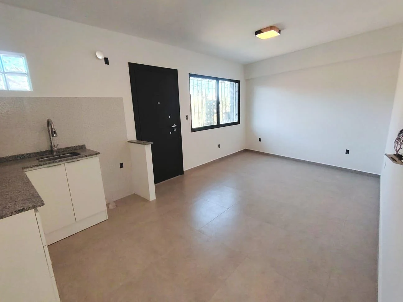 - Living-Comedor con cocina integrada, Muebles aéreos y bajo mesadas.