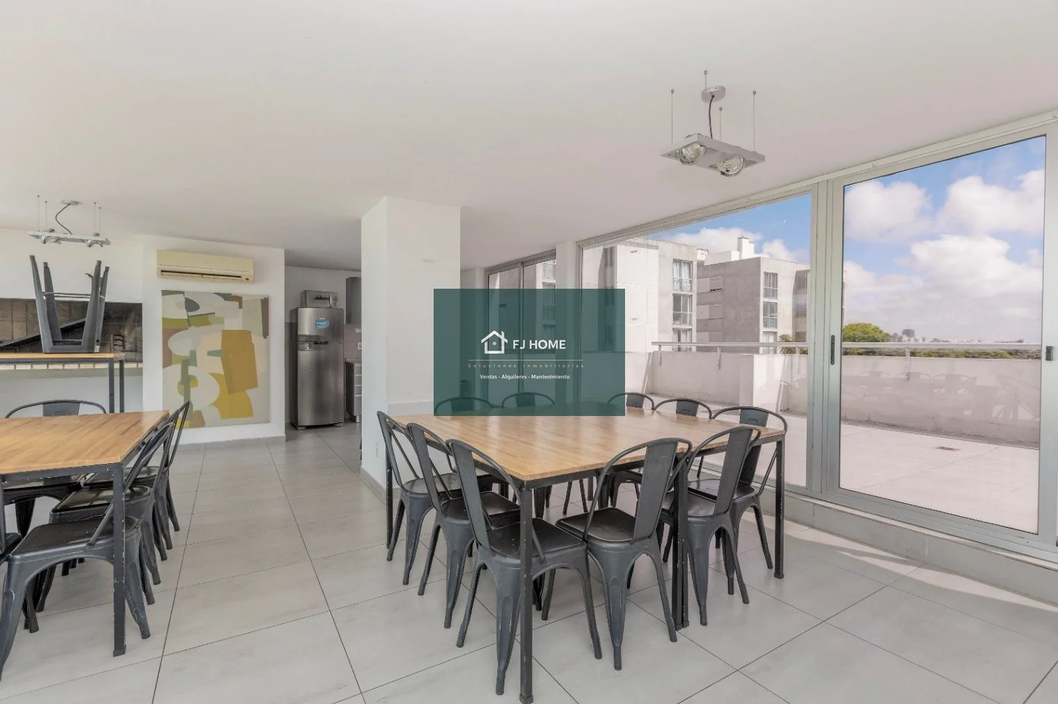 Portería las 24 hs., CCTV, amplio jardín interior con juegos para niños y zona fitness, media multi-cancha, cuatro Salones de Usos Múltiples completamente equipados con parrillero