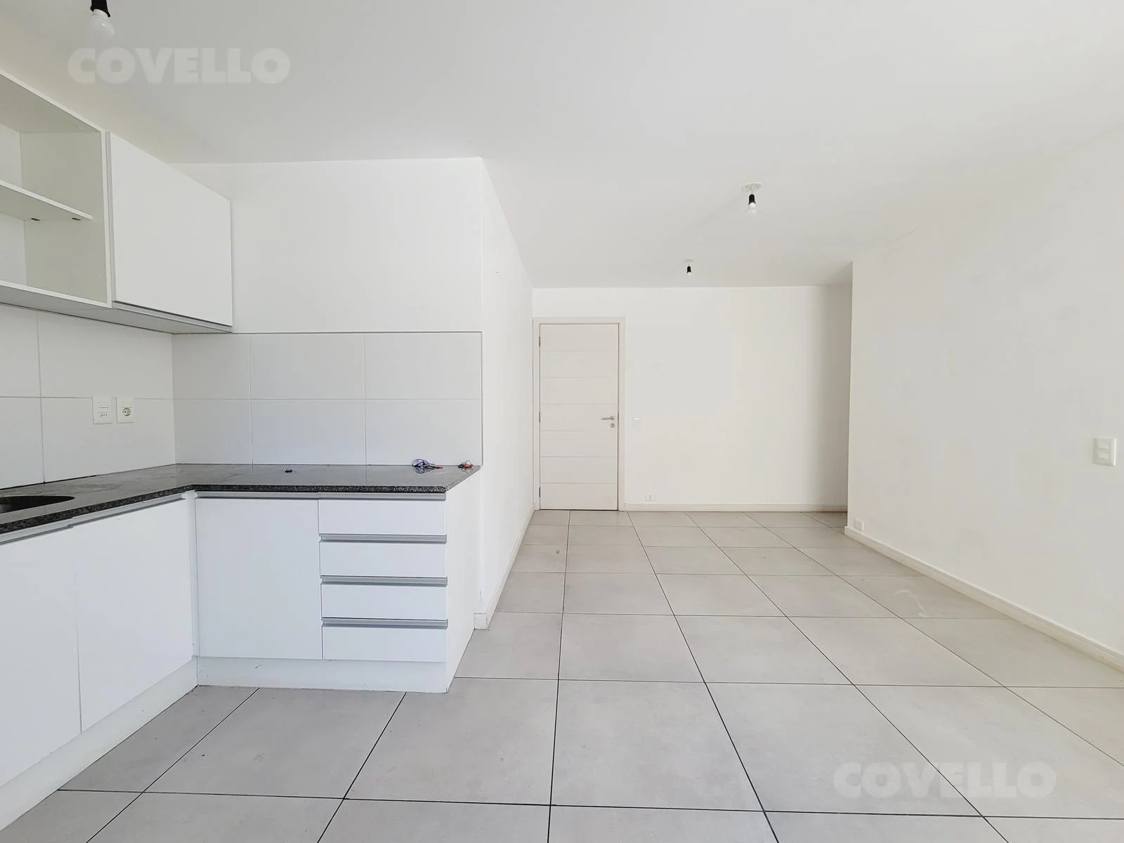 Al ingresar, serás recibido por una cocina integrada, equipada con una elegante mesada de granito y placares tanto bajo como sobre mesada, ofreciendo un espacio funcional y elegante para preparar tus comidas favoritas.