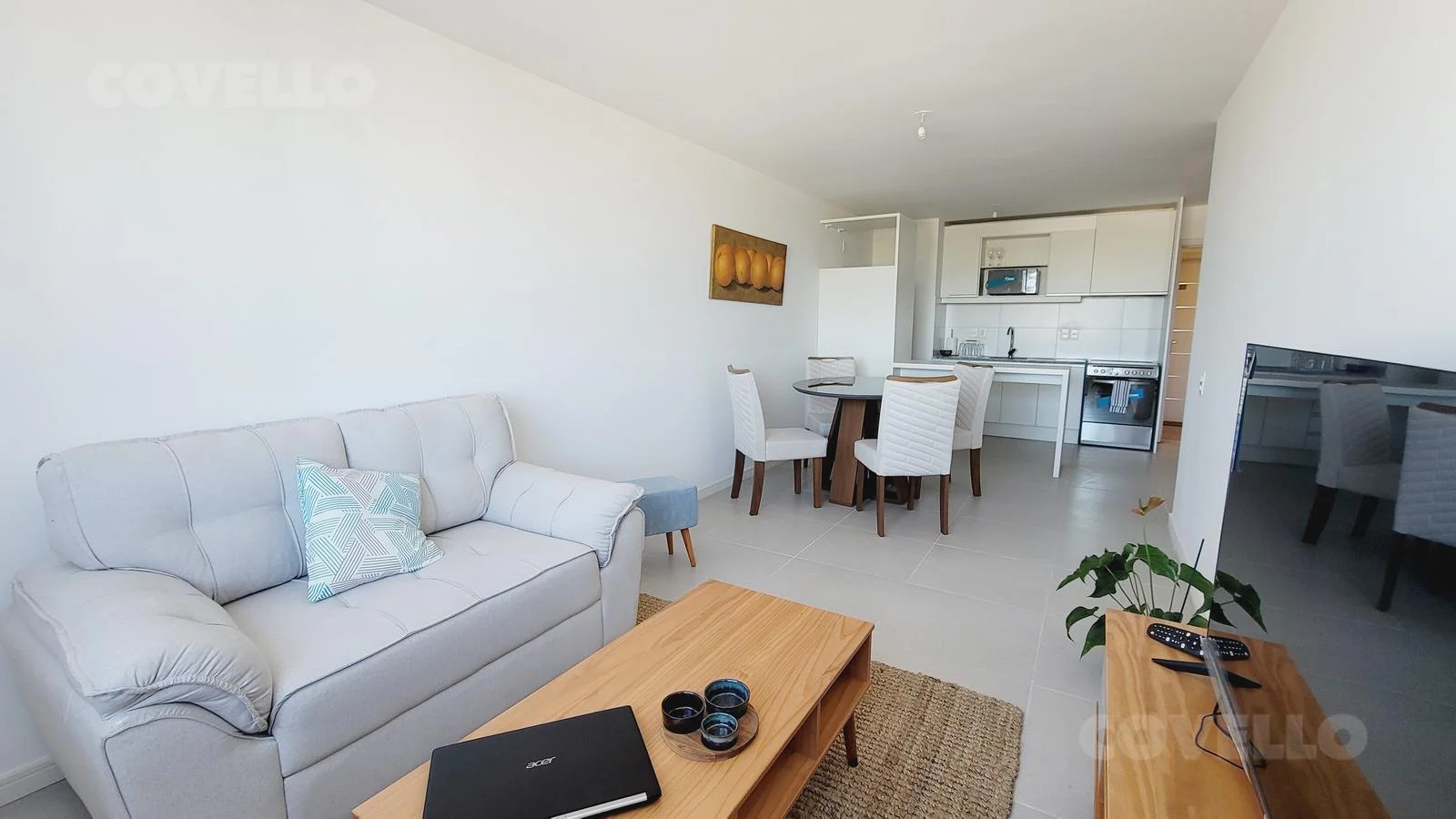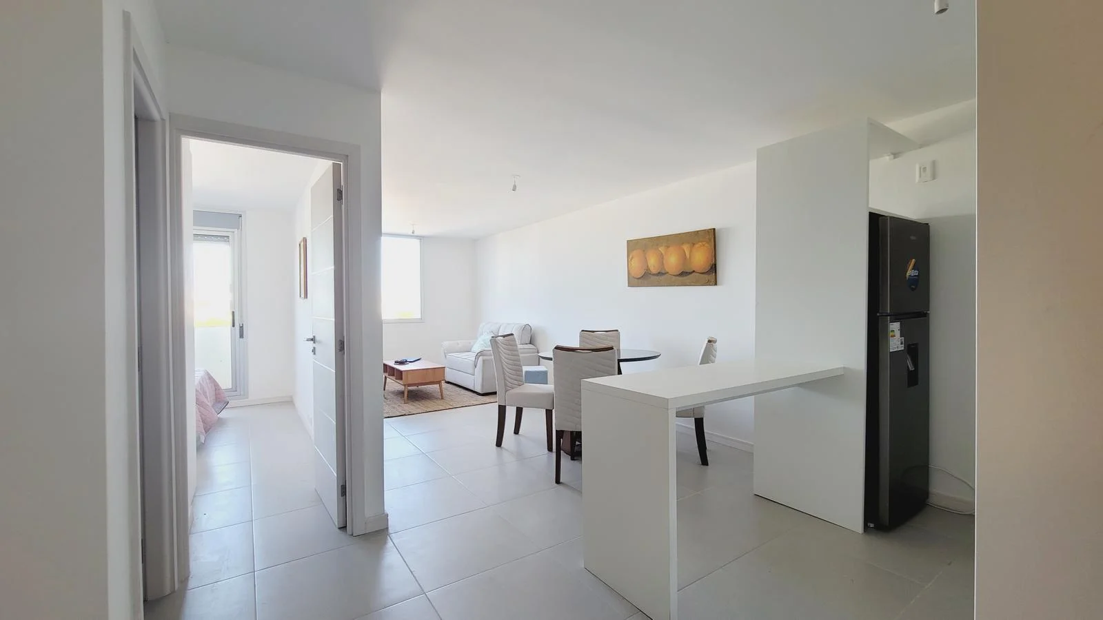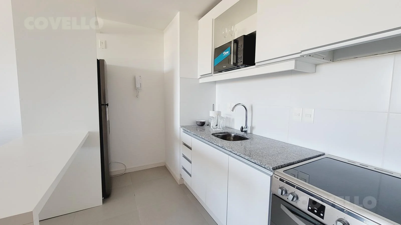 Al ingresar, serás recibido por una cocina integrada, equipada con una elegante mesada de granito y placares tanto bajo como sobre mesada, ofreciendo un espacio funcional y elegante para preparar tus comidas favoritas. El área de cocina se fusiona con el luminoso y espacioso salón-comedor, creando un ambiente acogedor para reuniones familiares o con amigos.