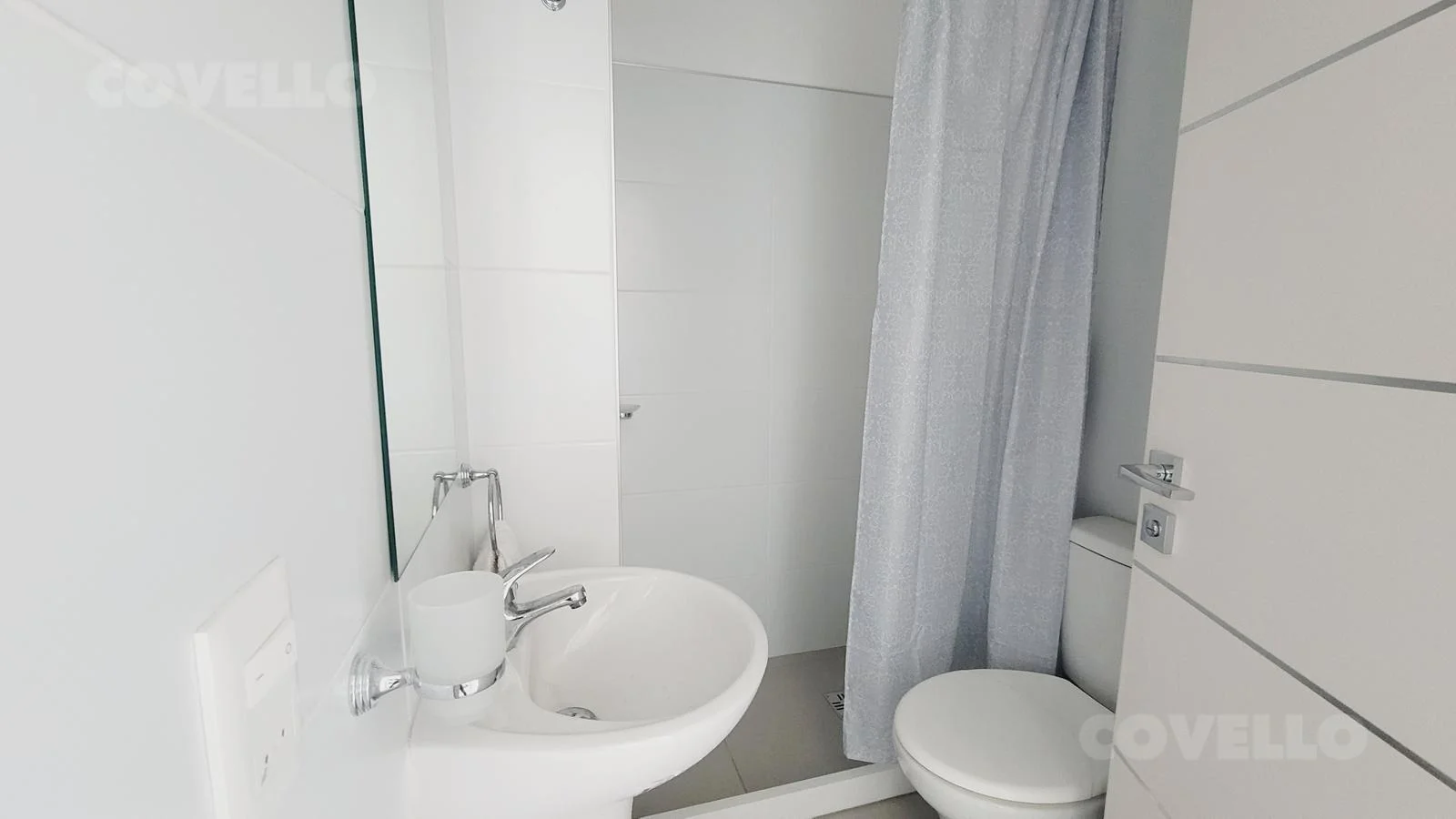 El apartamento también incluye un baño completo, con finas terminaciones que añaden un toque de elegancia al espacio.
