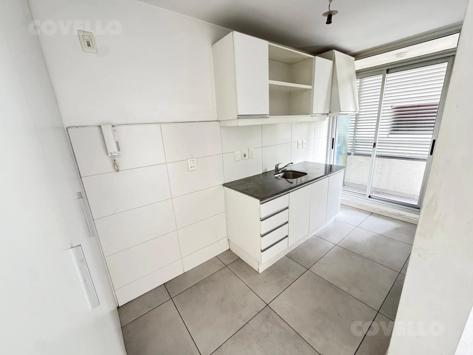 Cuenta con cocina definida, equipada con muebles aéreos y bajo mesada, buena superficie de trabajo y salida a la terraza de servicio.