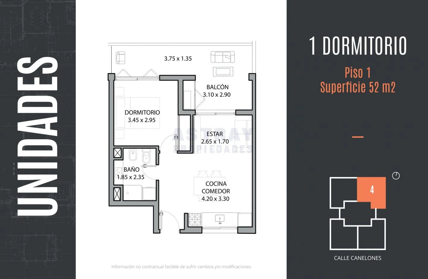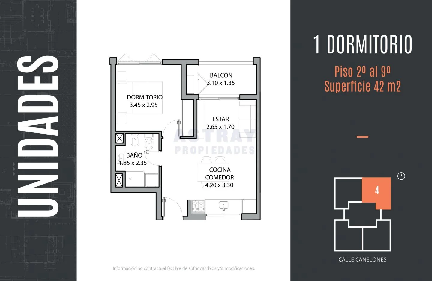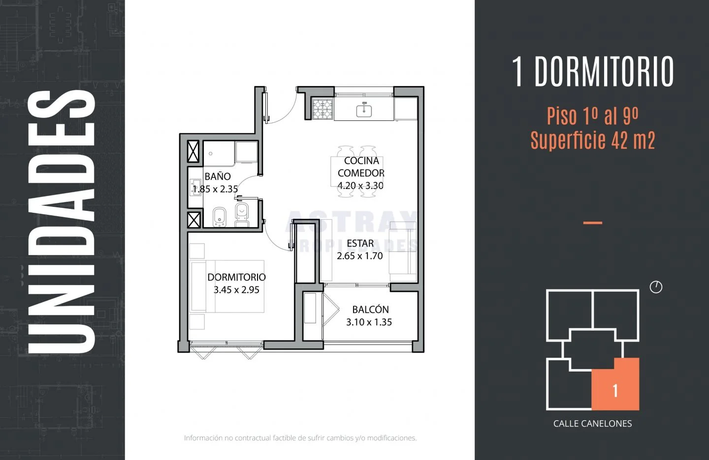Caracteristicas: BALCON, LIVING COMEDOR, APTO PARA FAMILIASNIñOS, PERMITE MASCOTAS, PLACARD EN COCINA, PLACARD EN DORMITORIO, AGUA CORRIENTE, LUZ ELECTRICA, PORTERO ELECTRICO, SALóN DE USO COMúN