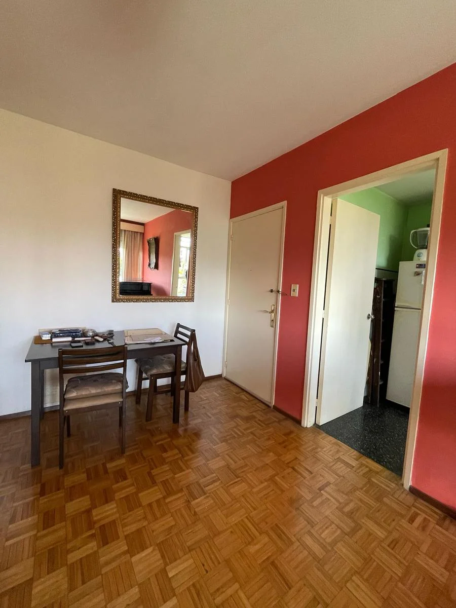 El dormitorio es muy amplio, ubicado al contrafrente, lo que asegura máxima tranquilidad y silencio, con vista despejada y placares integrados. El baño es cómodo y funcional, al igual que la cocina y el dormitorio, todos con placares que optimizan el espacio de guardado. Los pisos de parquet se encuentran en muy buen estado, aportando calidez, estilo y calidad a toda la unidad.