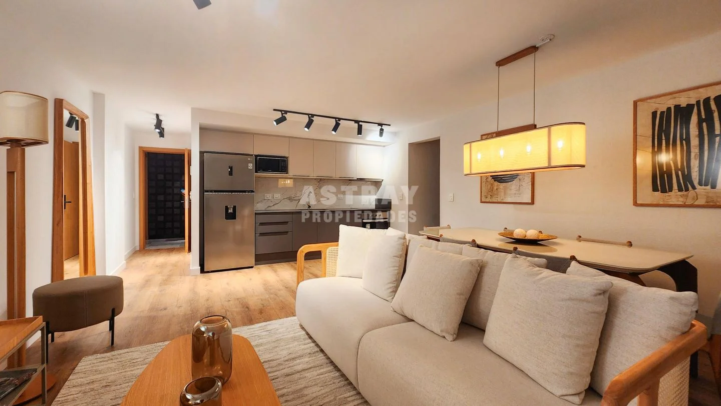 Living comedor de generosas dimensiones, con cocina semi integrada y acceso a balcón.