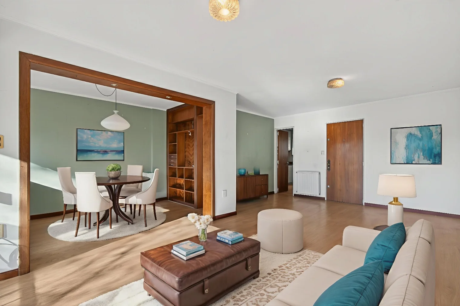 El apartamento originalmente contaba con un tercer dormitorio, pero se anexó al living y se puede utilizar como escritorio o comedor.
