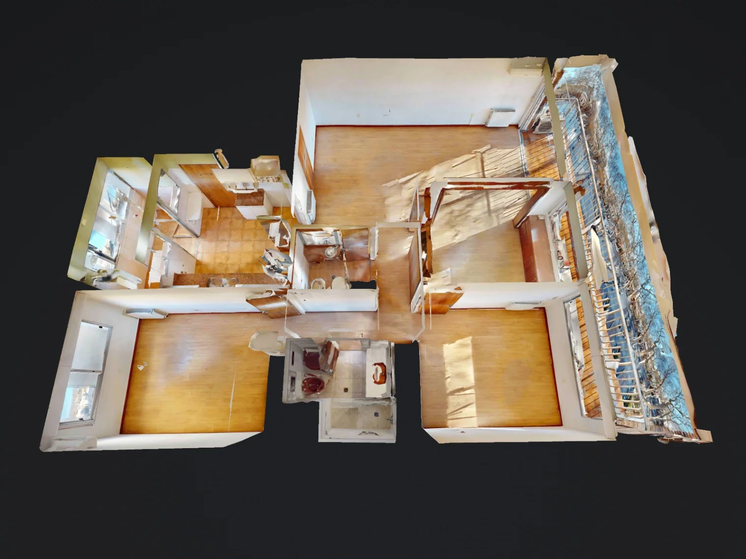 El apartamento es de piso completo, y cuenta con dos puertas de ingresos: hacia el living y hacia la cocina.