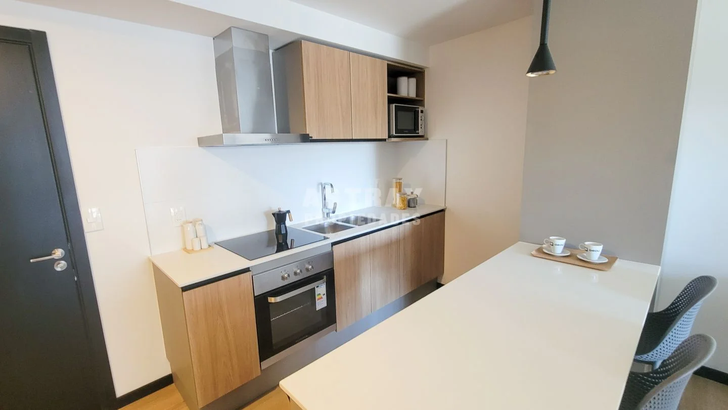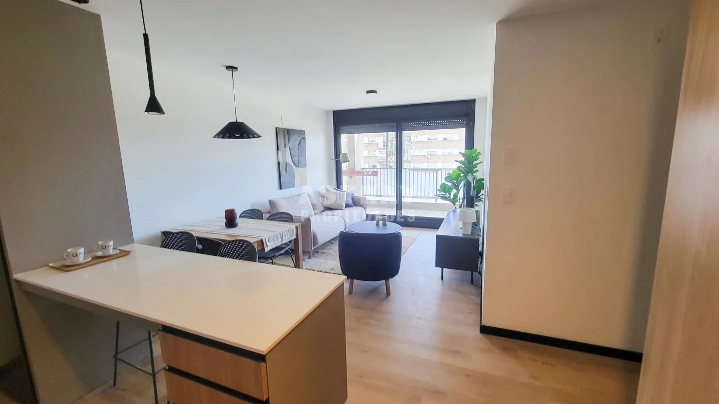 Living comedor con cocina semi integrada con placares aéreo y bajo mesada.