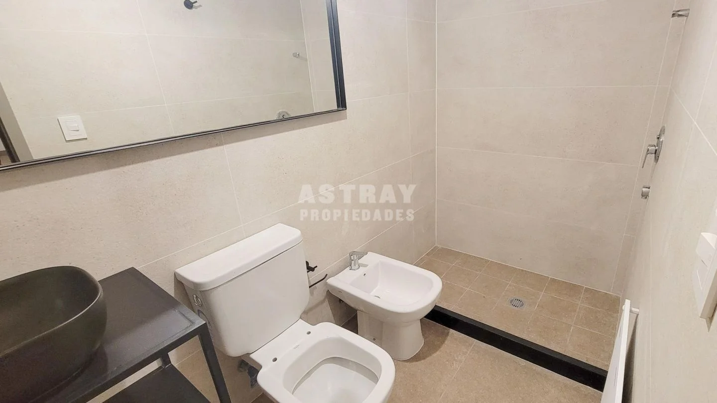 Predio con amplios jardines y variedad de amenities: piscina, solarium, gimnasio, sauna, salón de fiestas y laundry.