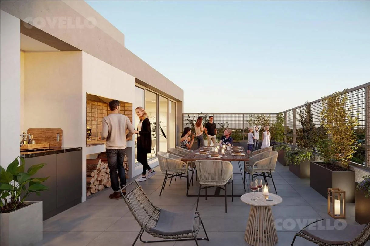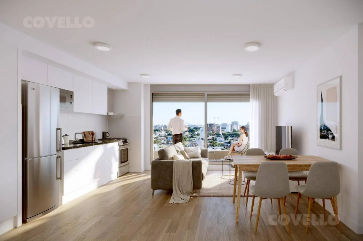 Amplio y luminoso living comedor con salida a terraza, cocina integrada, 1 dormitorio, baño completo con artefactos sanitarios y griferías de primera calidad.