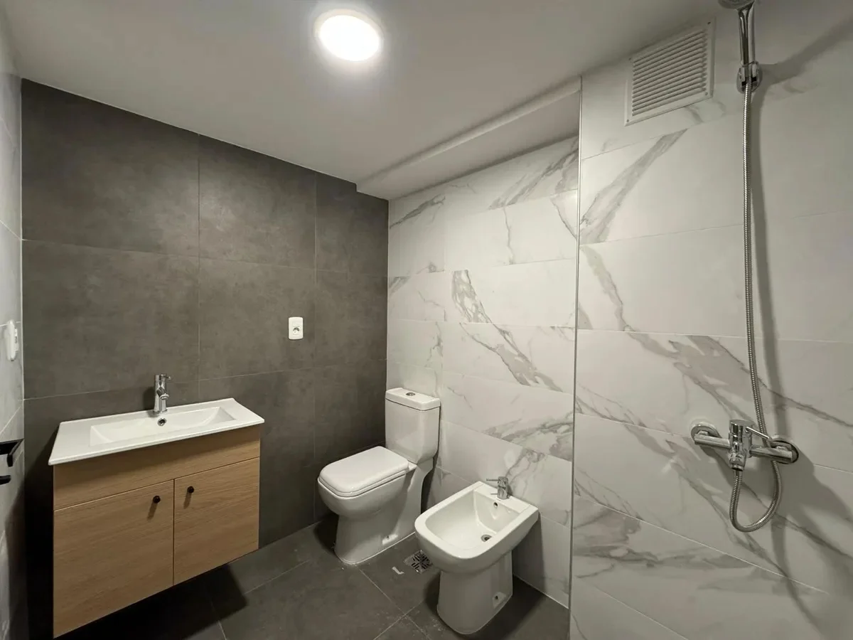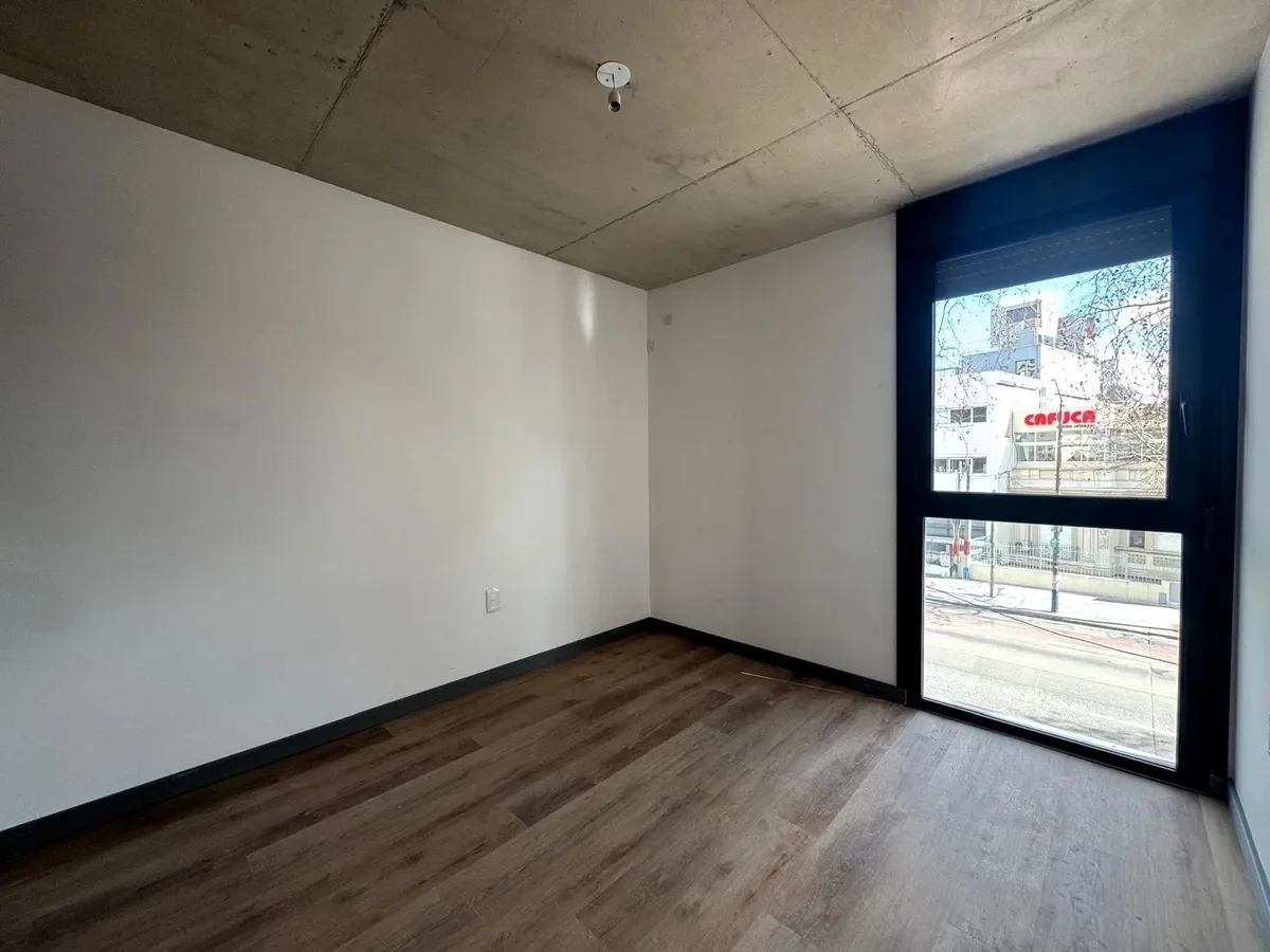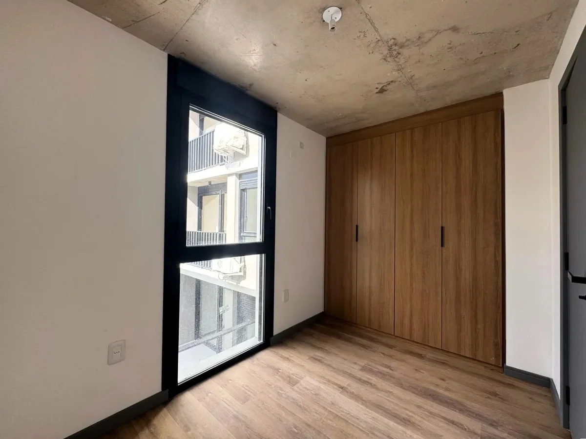 El dormitorio principal se ubica al frente y cuenta con placard, mientras que el segundo dormitorio se encuentra al contrafrente también con placard. El baño es confortable, equipado con mueble y bacha, e incluye espacio para lavarropas.