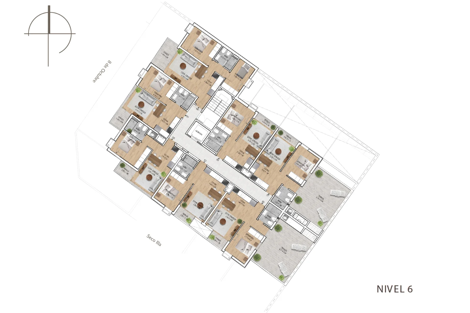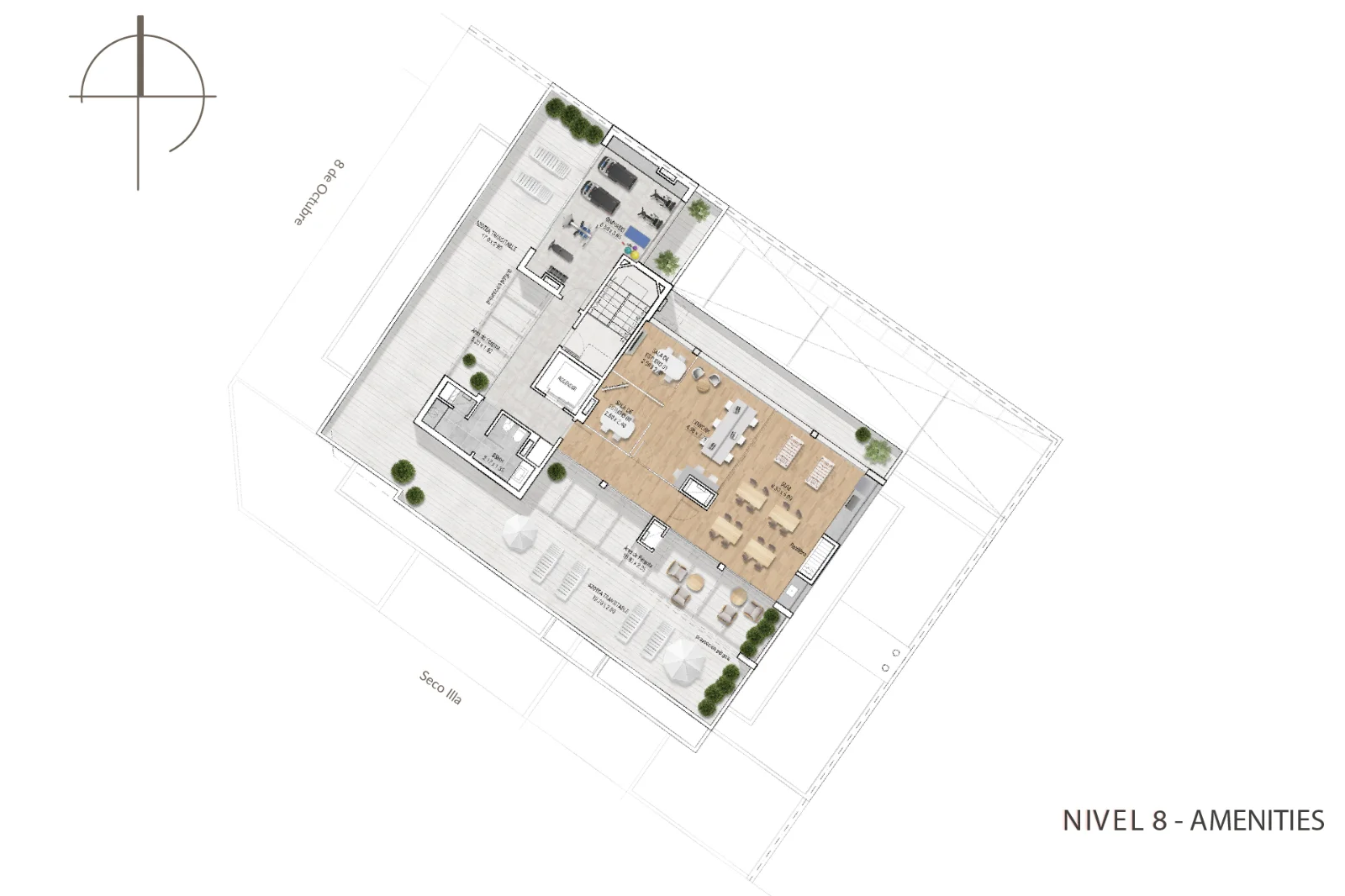 Superficie total de 56.22 m², de los cuales 51.2 m² son cubiertos y 5.02 de una terraza privada. Este moderno apartamento ofrece un amplio living comedor con cocina integrada y profusión de placares, además de una cómoda terraza al frente.
