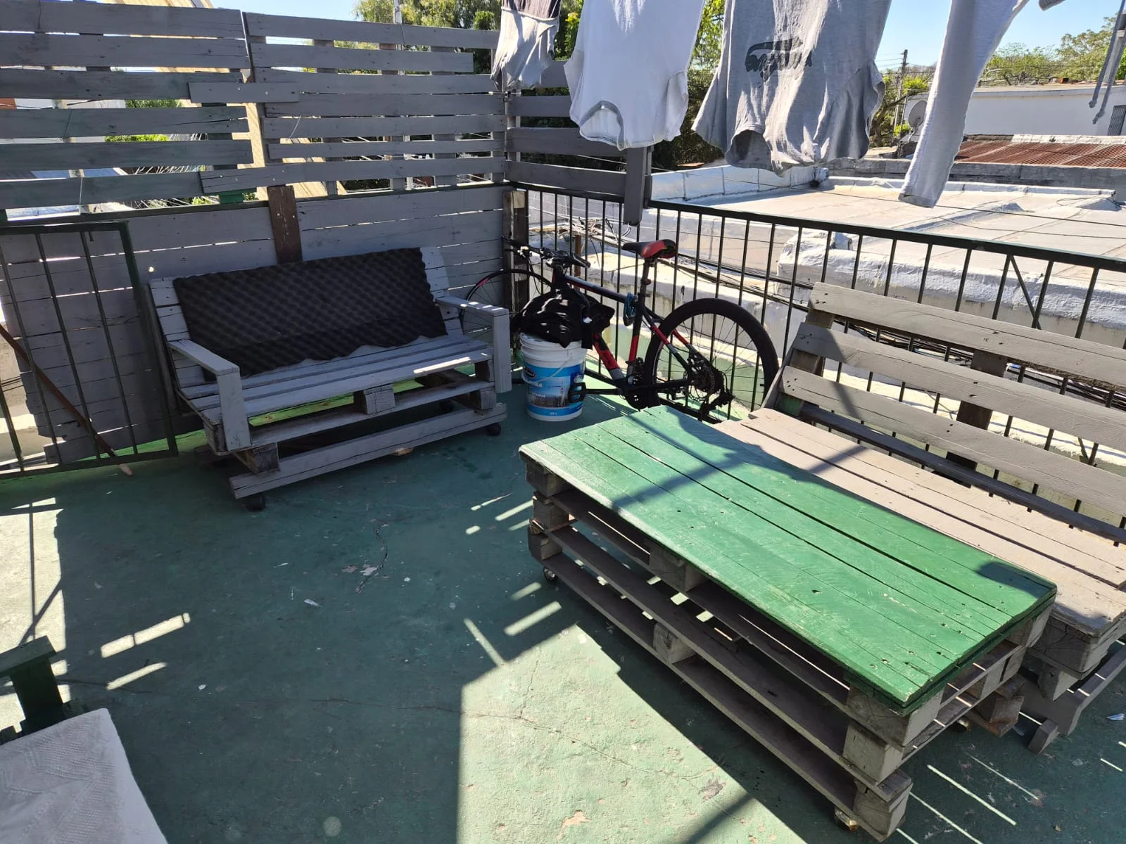 La propiedad cuenta con parrillero en la azotea, brindando espacio adicional para reuniones o actividades al aire libre. El baño presenta lavabo, inodoro y sector para lavarropas. La cocina se encuentra equipada con mueble bajo mesada, pileta y espacio para cocina y heladera.