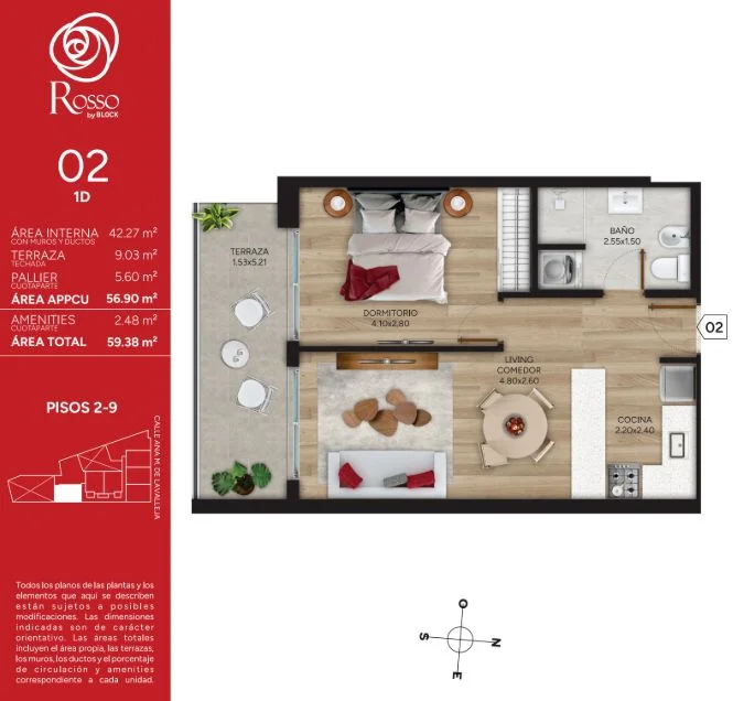 El edificio, se proyecta para marzo de 2028, ofreciendo 10 pisos con un total de 78 apartamentos con diseños eficientes y funcionales. Ofreciendo unidades, de 1 y 2 dormitorios, destacan por sus amplias y disfrutables terrazas. El proyecto incluye una variedad de comodidades que elevan la experiencia de sus residentes.