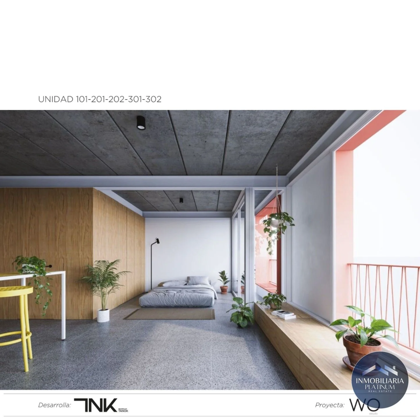 Con una superficie total de 61.9 m², que incluye 37.3 m² cubiertos y 27.6 m² descubiertos en una amplia terraza, el apartamento dispone de un dormitorio, un baño, cocina y balcón.