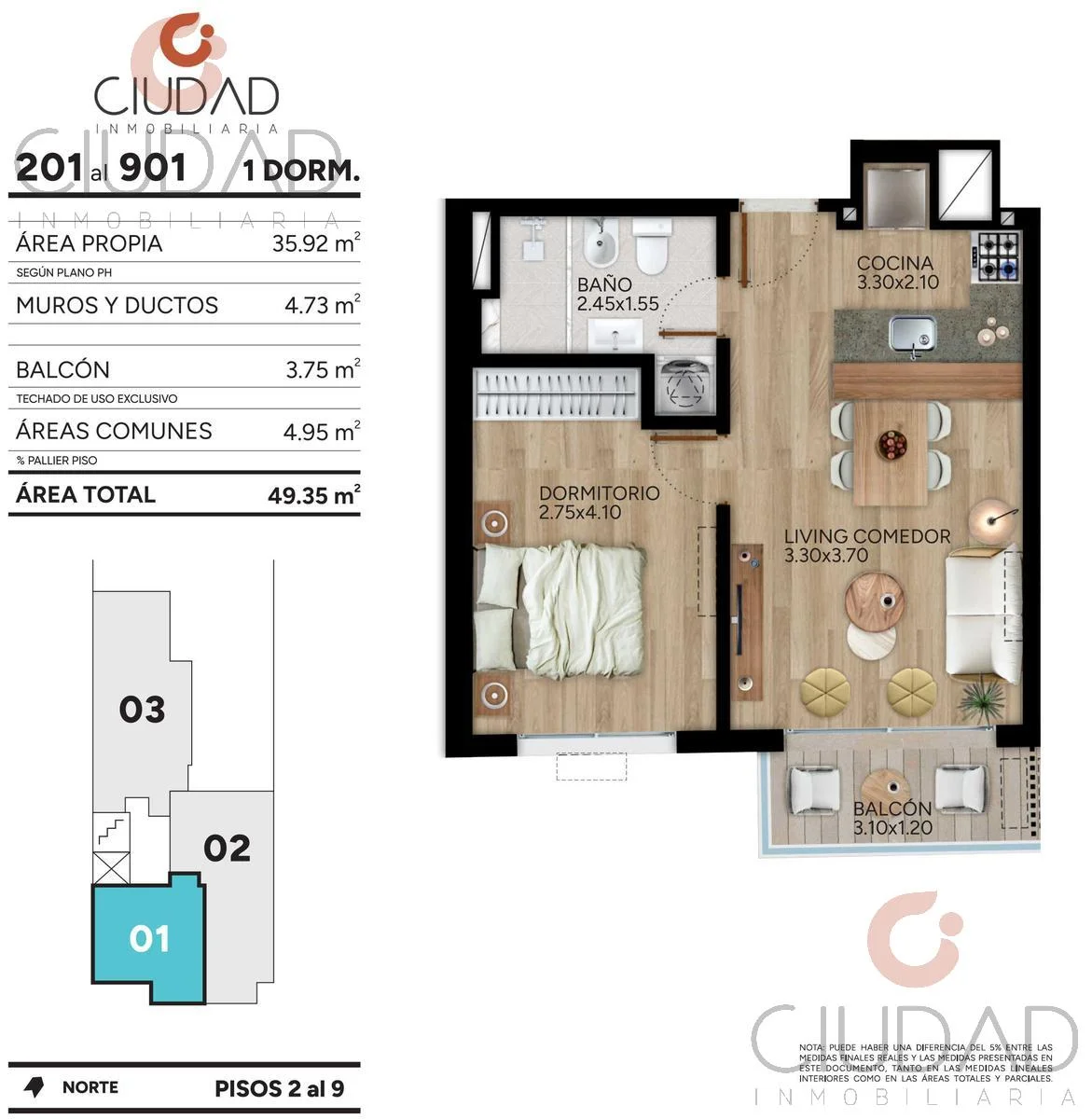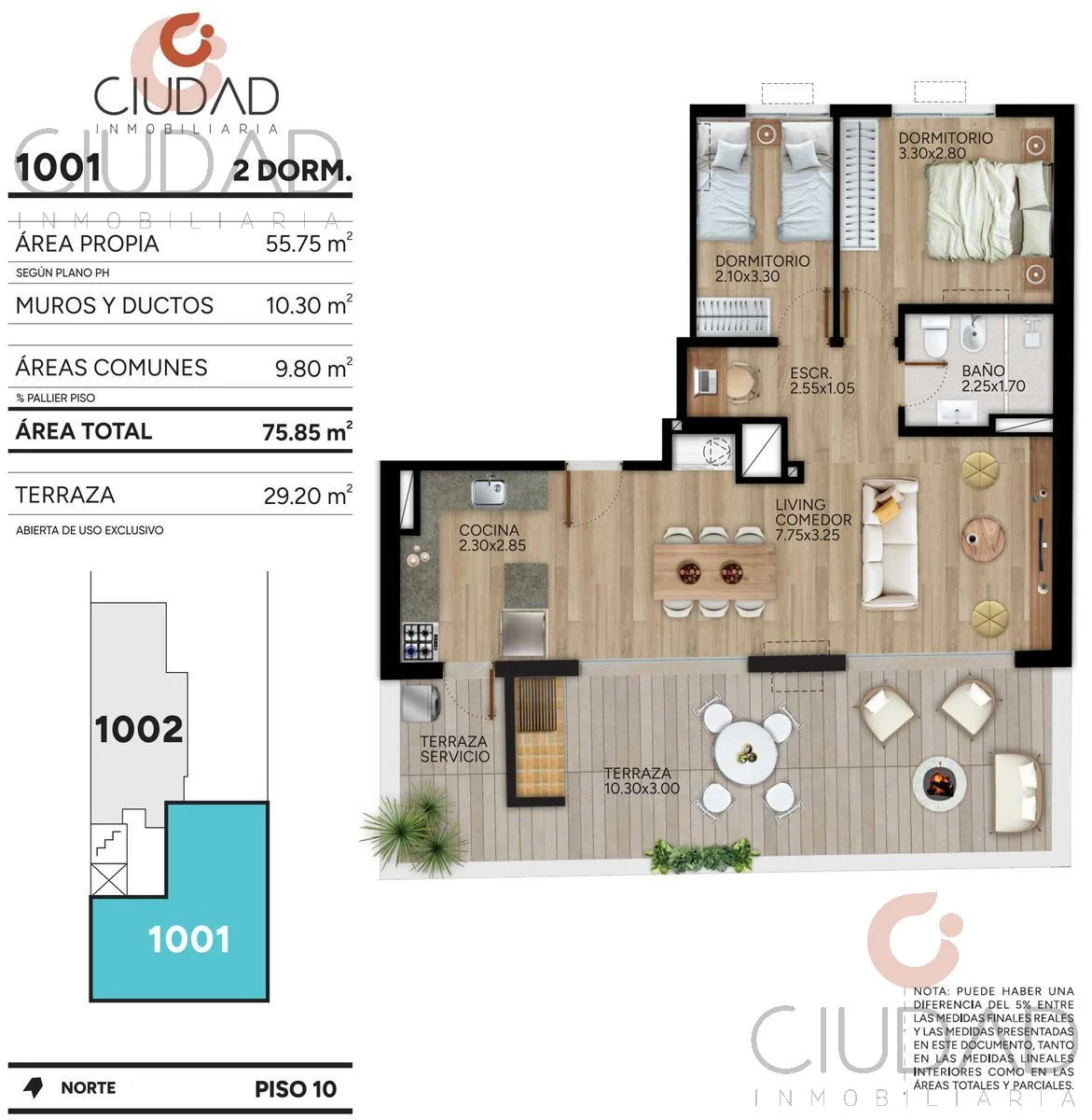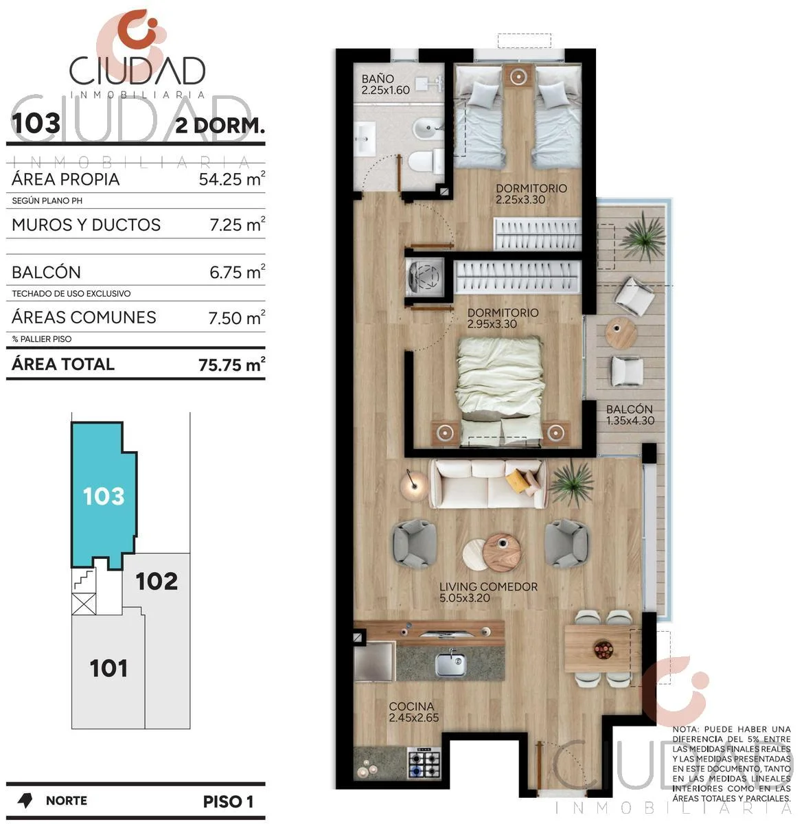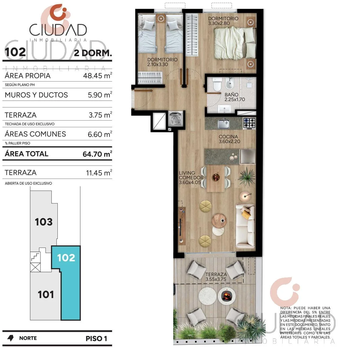 Unidad en segundo piso al frente, con: