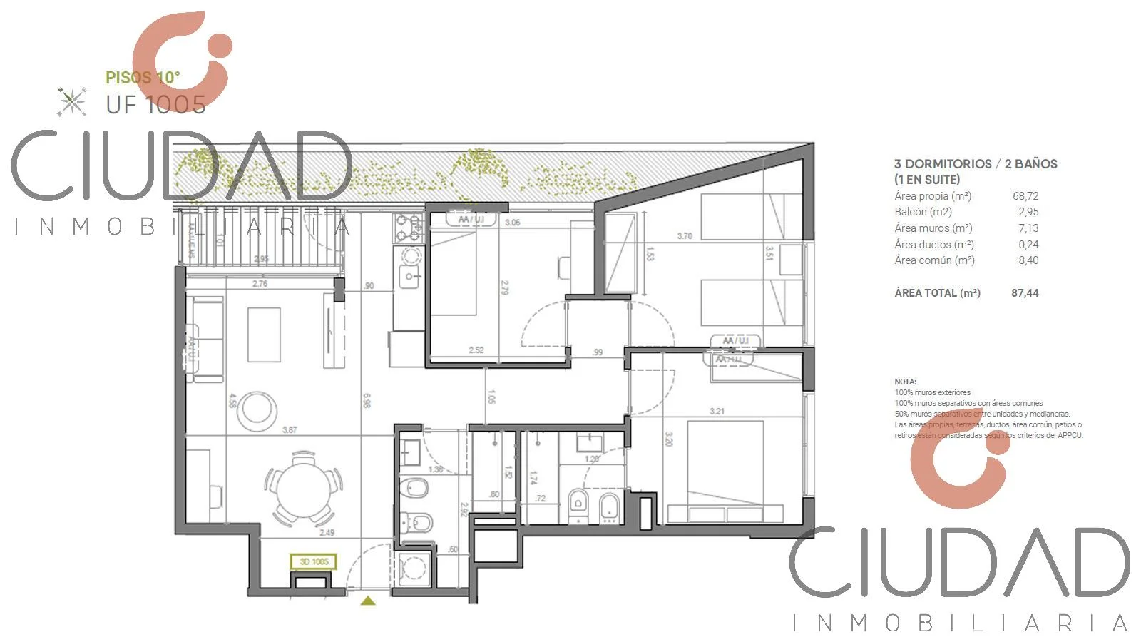Unidad al Frente en Piso 10 con: