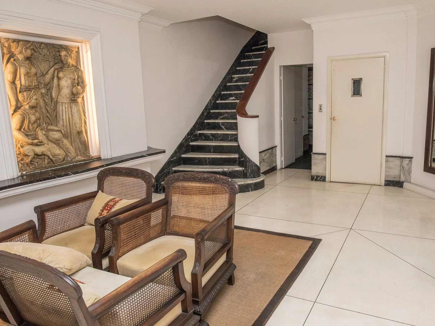 Pisos de parquet y comodidades como persianas eléctricas y calefacción central. Edificio con 2 ascensores, servicio de portería y limpieza con horario.