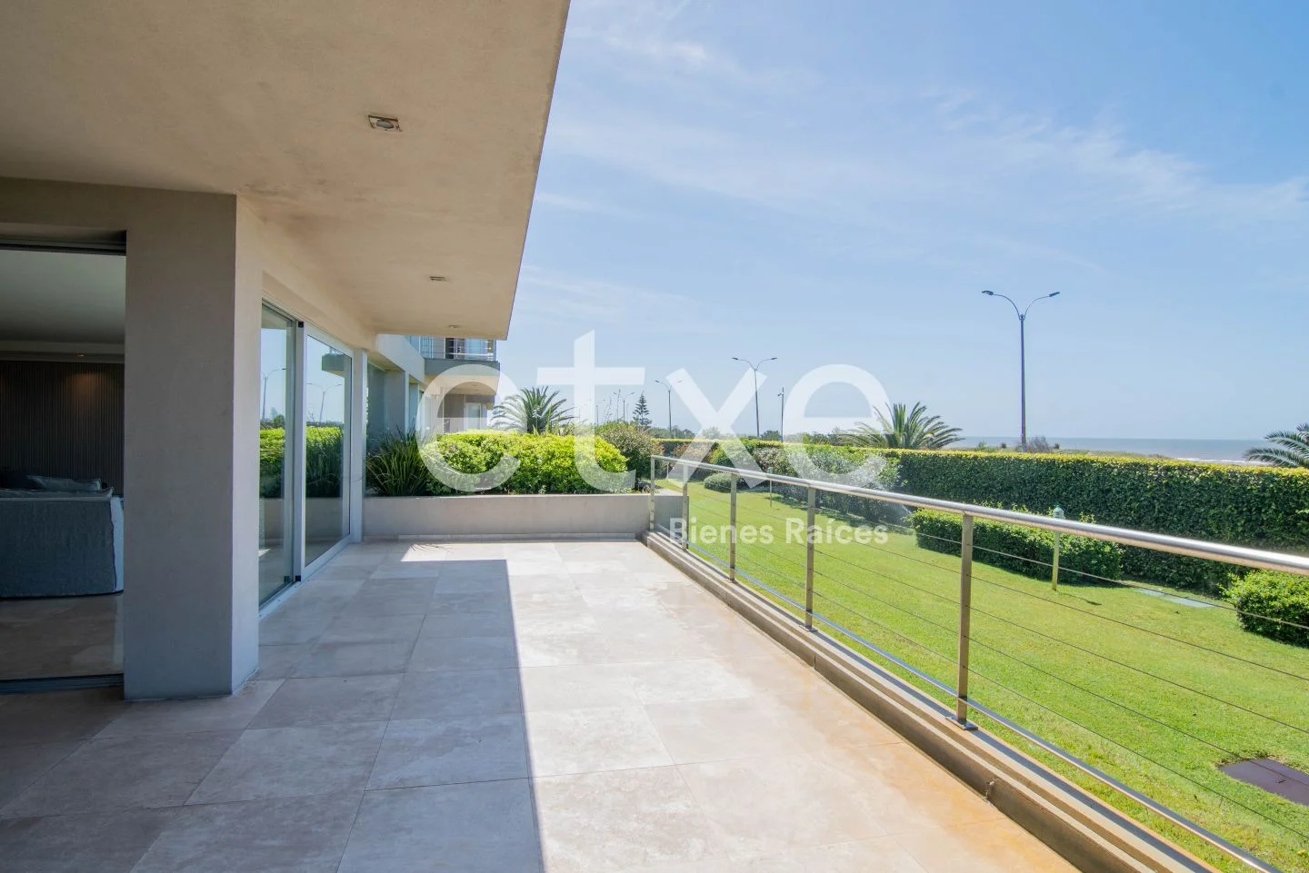 Hall de distribución. Estar diario con salida al jardín con parrillero. Dormitorio principal al frente con salida a misma terraza frente al mar. Cuenta con vestidor y baño en suite. Además, dos dormitorios en suite y con vestidor. Cocina definida y baño social .