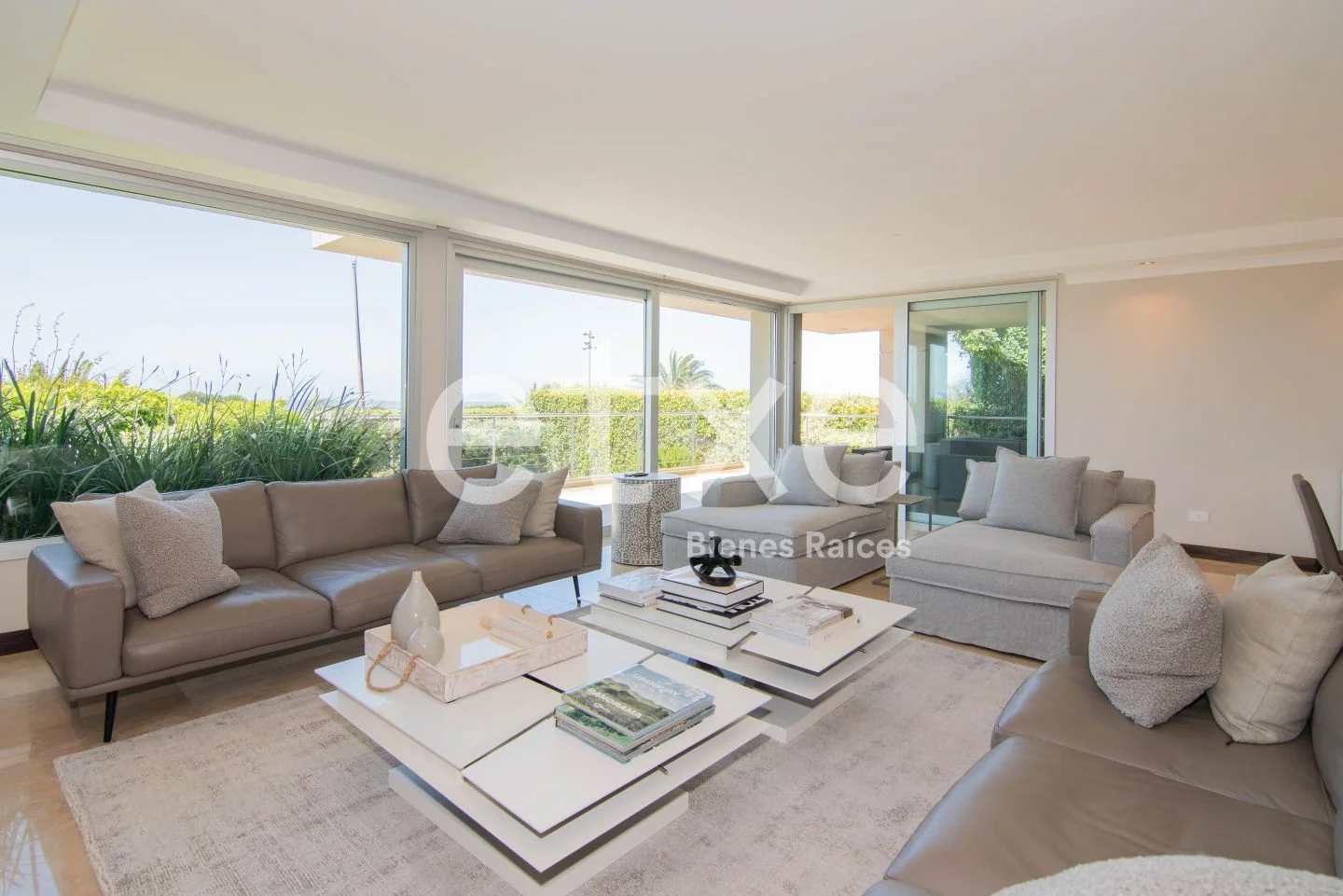Enorme living comedor con salida a terraza al frente con vista a la rambla de carrasco. La misma cuenta con living exterior.