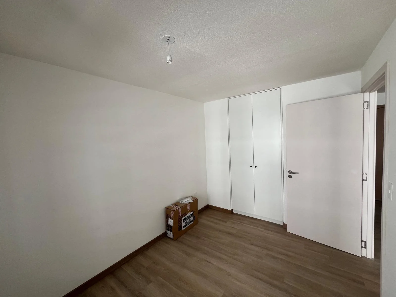 El dormitorio cuenta con armario empotrado a la pared y previsión para aire acondicionado .