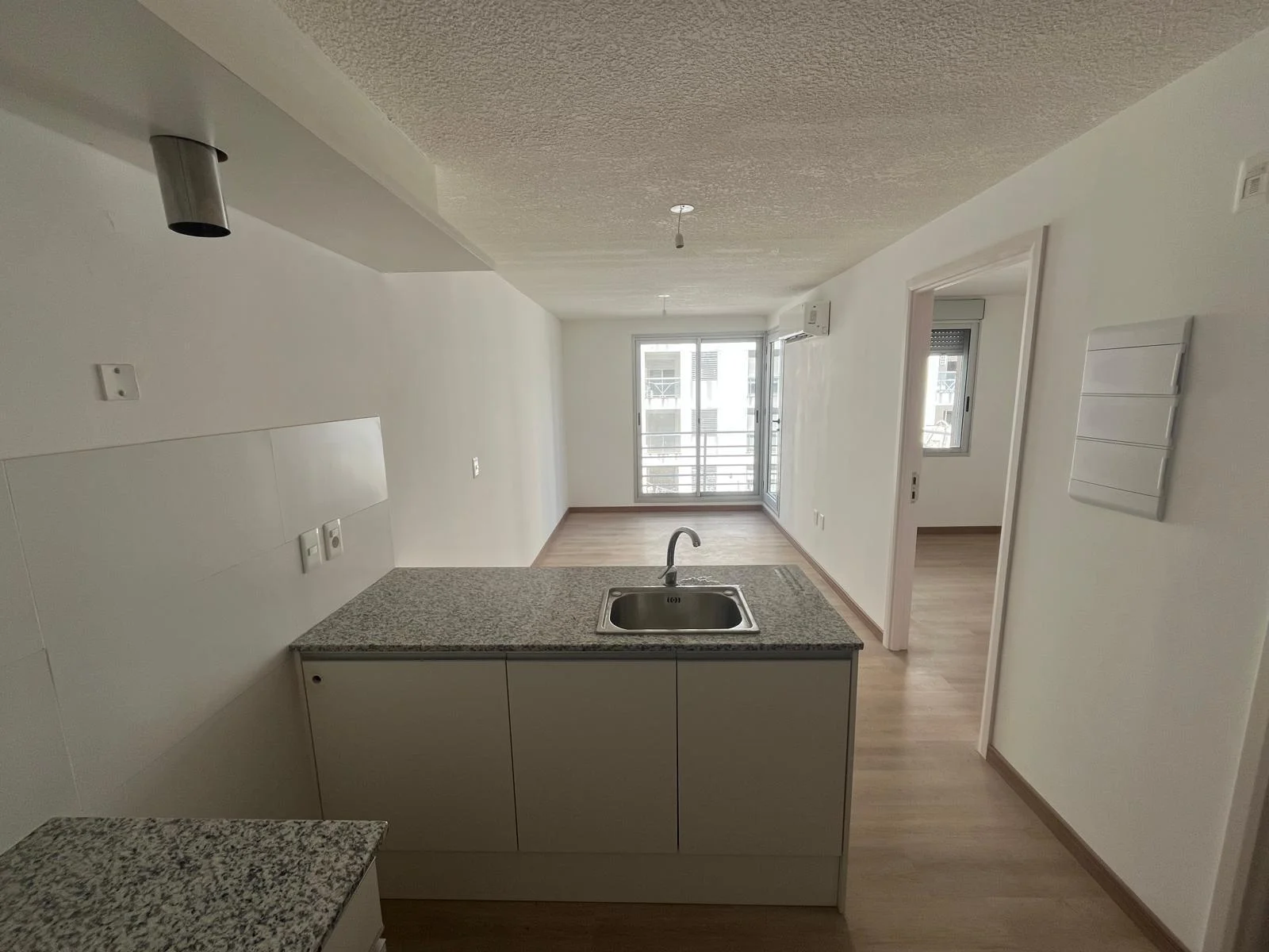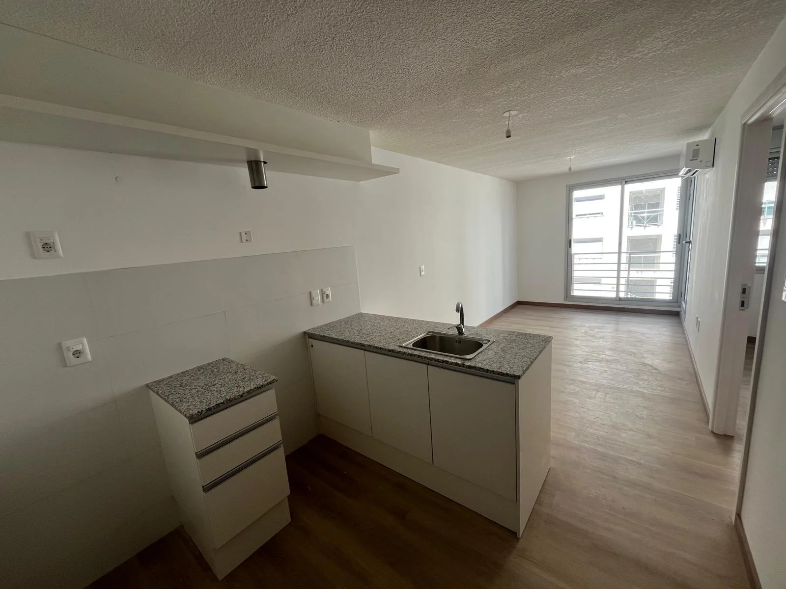 Cuenta con un dormitorio con persiana de enrollar, baño completo con previsión para lavarropas y un cómodo living comedor con cocina integrada, equipada con muebles bajo mesada e isla.
