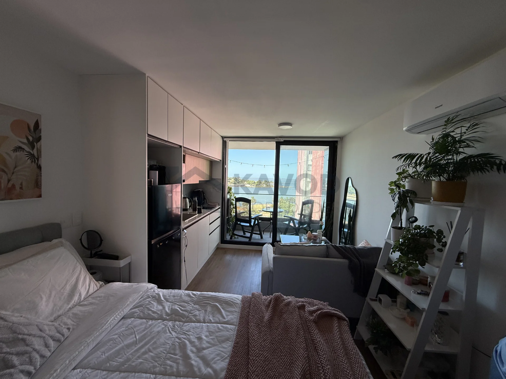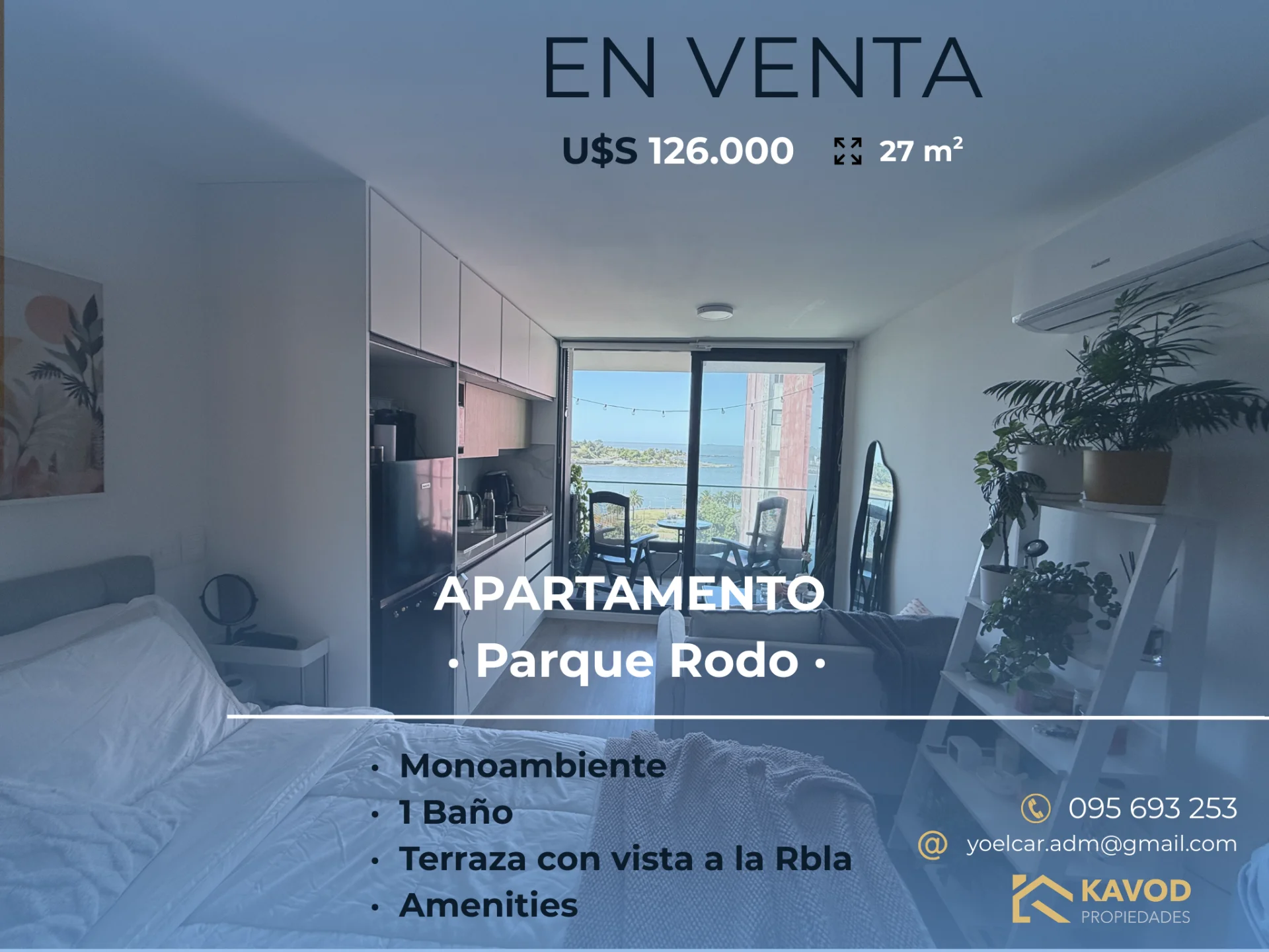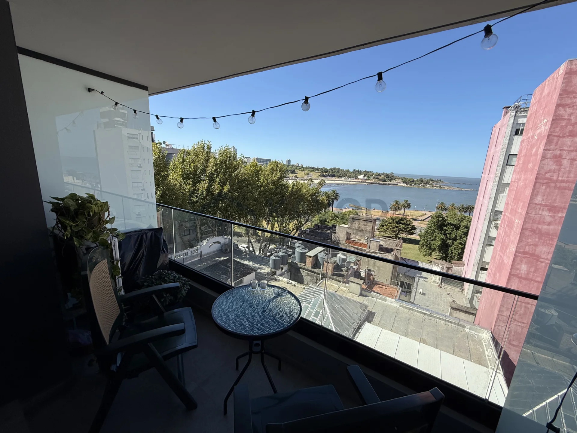 Ubicada en séptimo piso con terraza y hermosa vista a la rambla, muy luminosa. Cuenta con ambiente cómodo, cocineta equipada con horno y anafe, y baño completo