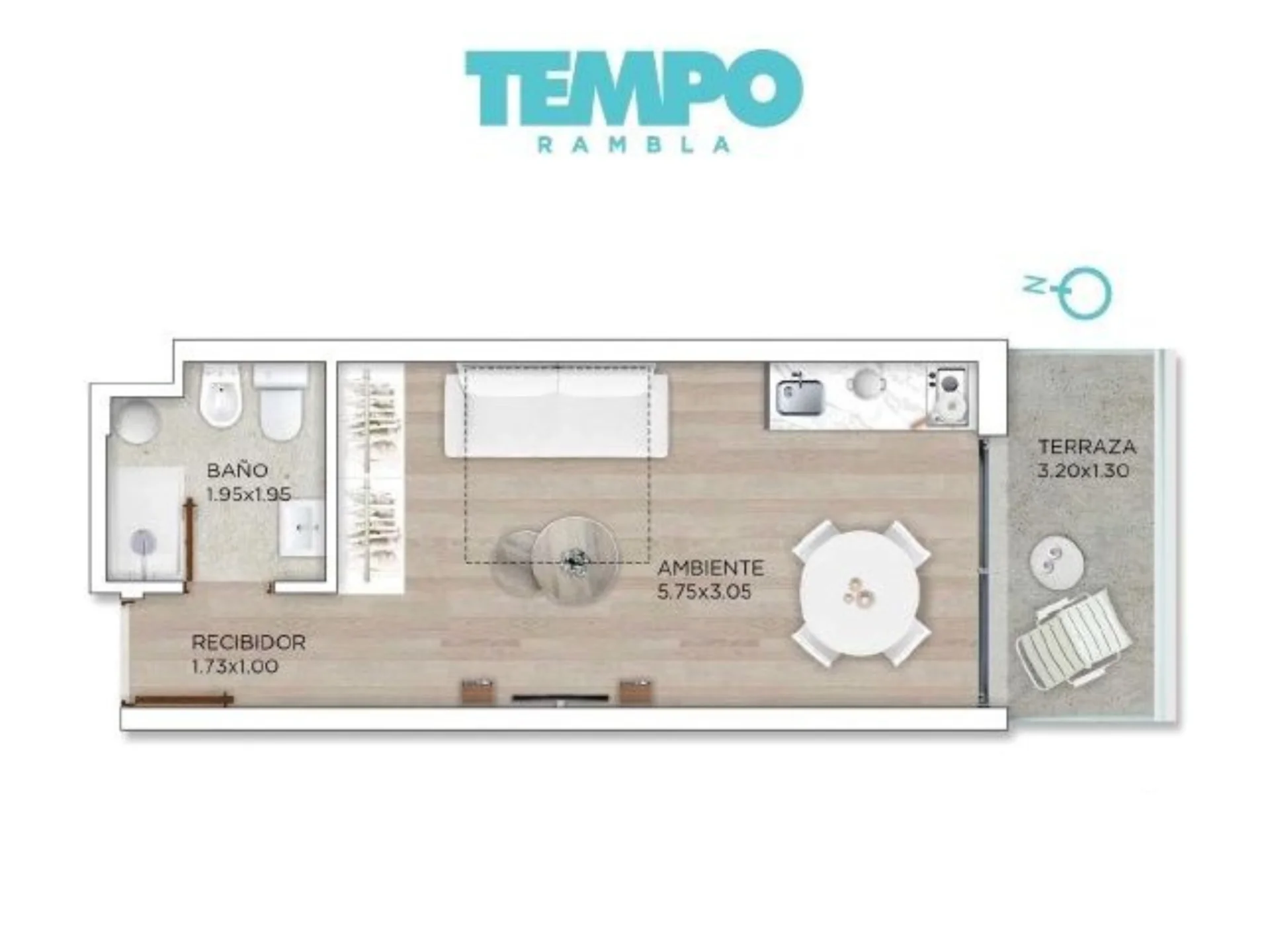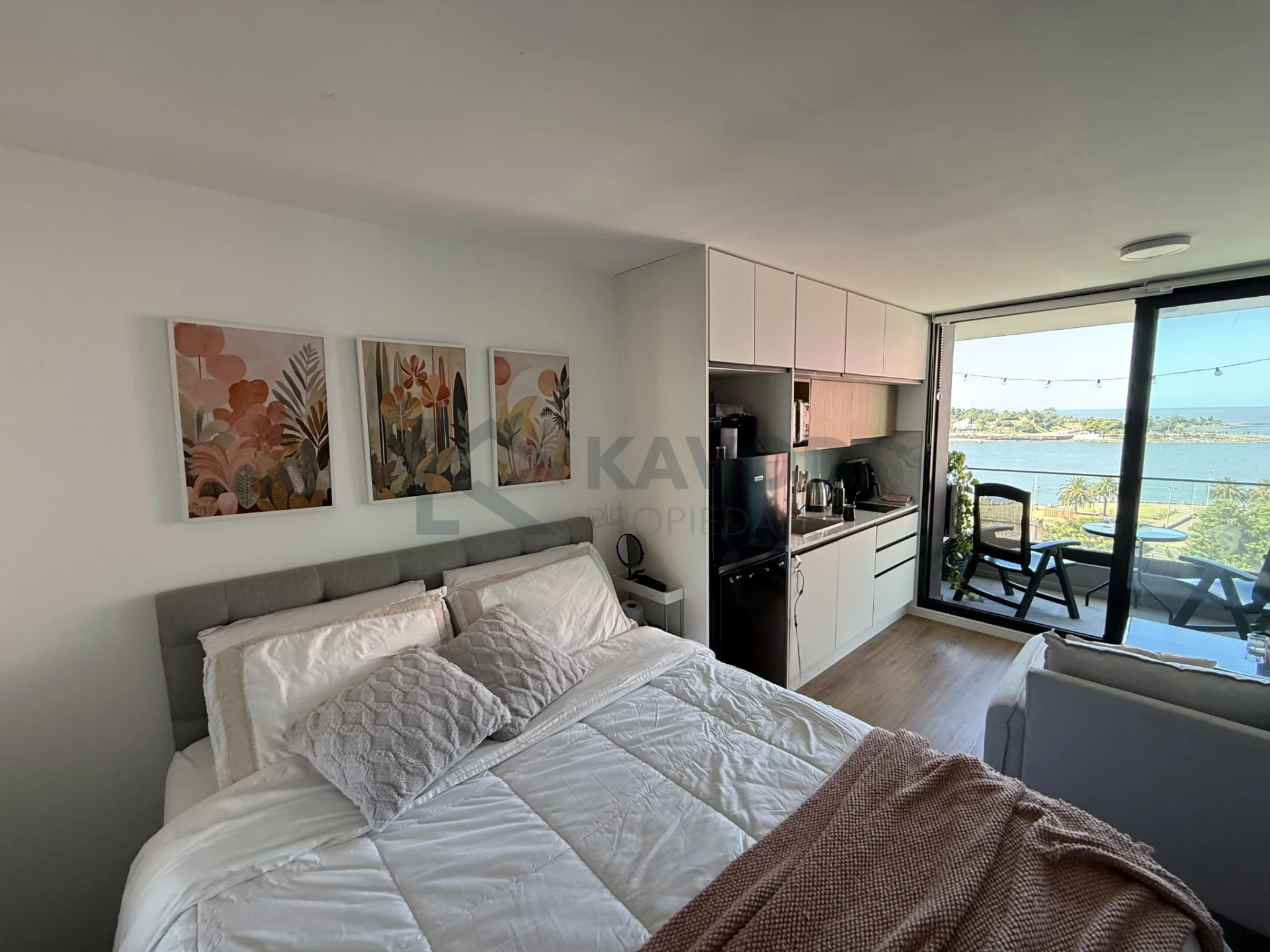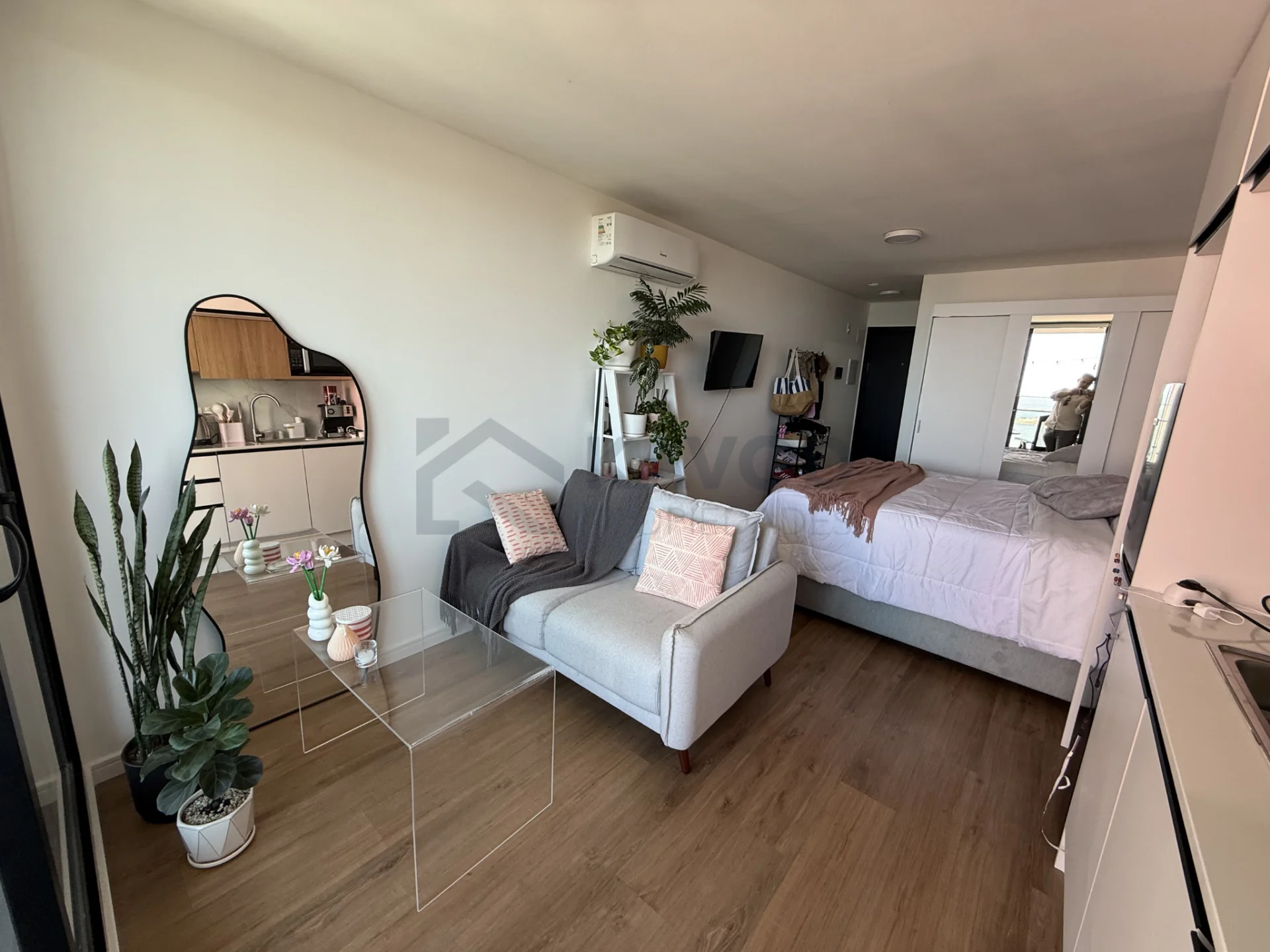 Ubicada en séptimo piso con terraza y hermosa vista a la rambla, muy luminosa. Cuenta con ambiente cómodo, cocineta equipada con horno y anafe, y baño completo