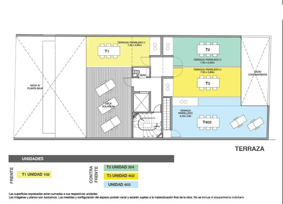 Terraza de uso exclusivo de 21 m2 con parrillero y lavarropas