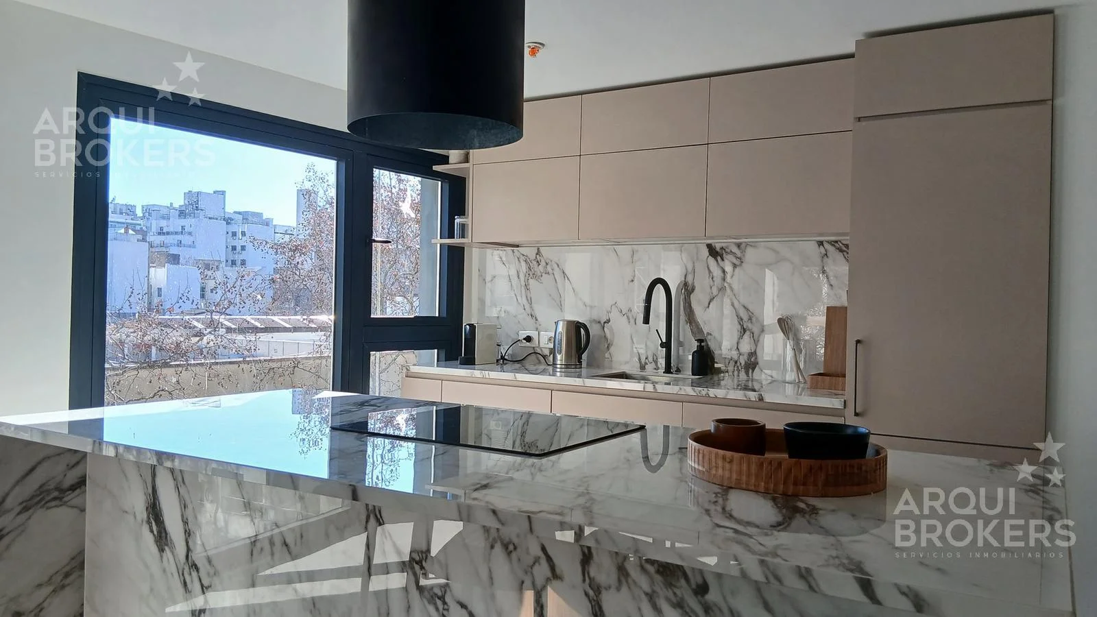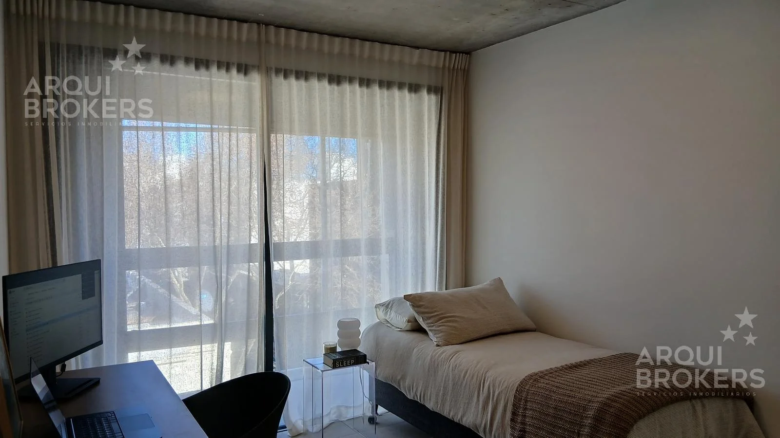 Monoambiente con terraza al frente, cocina integrada con placares, 1 baño.