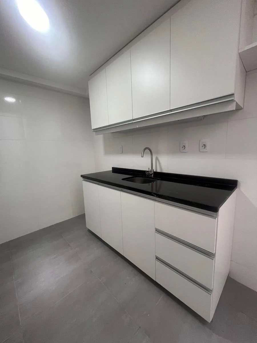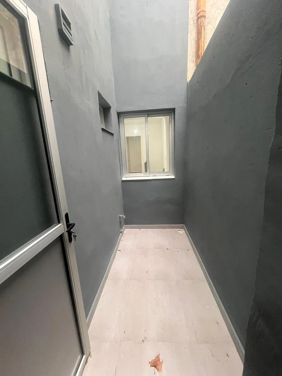 Cocina definida, con muebles sobre y bajo mesada, salida a pequeño espacio exterior para colgar ropa y sector con conexión para lavarropas.