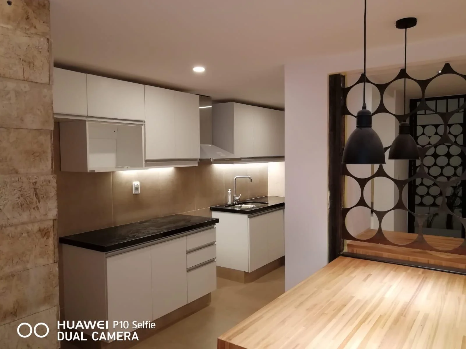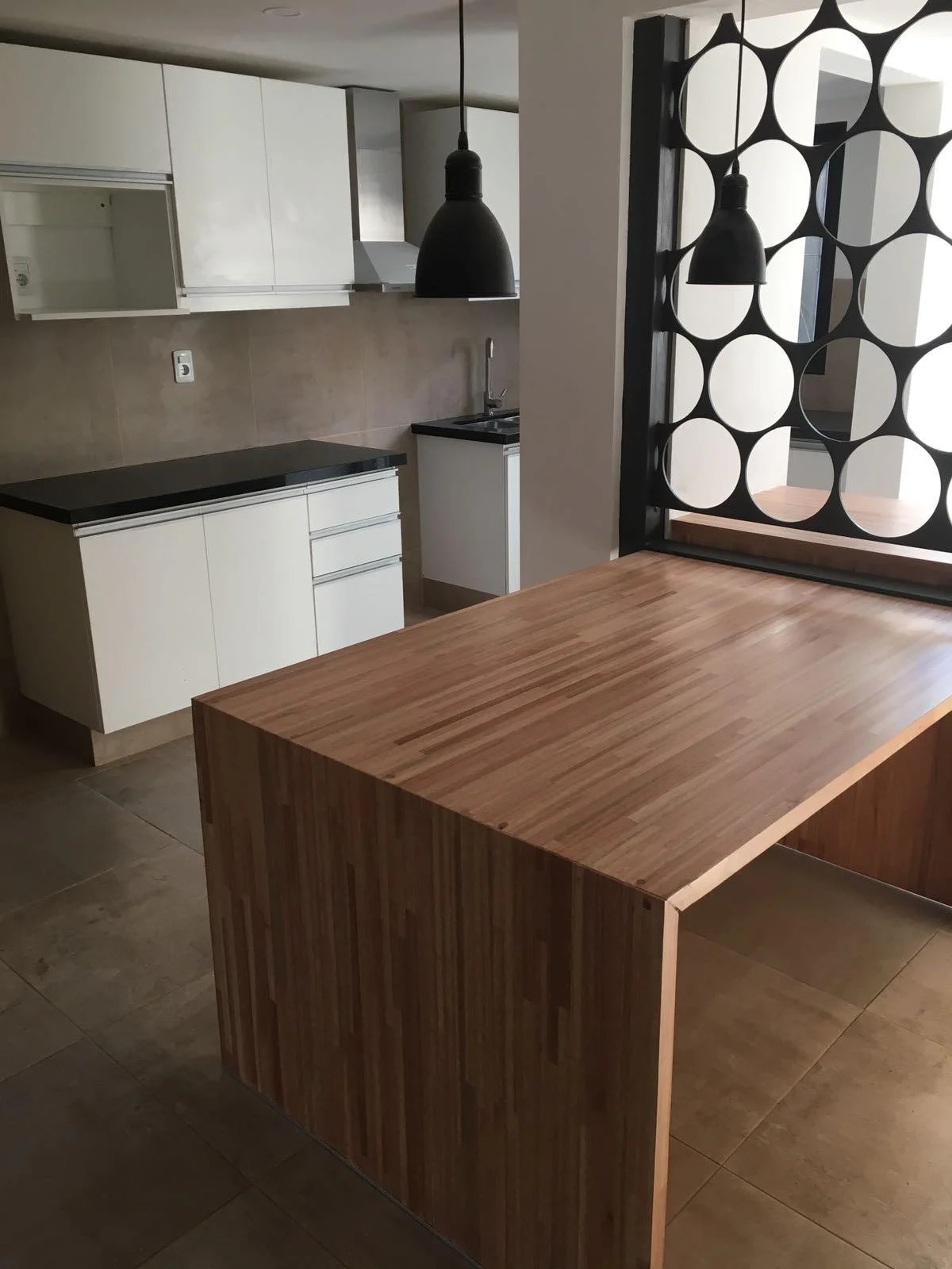 La cocina dispone de barra desayunadora, muebles nuevos y buena superficie de trabajo, logrando un espacio práctico y funcional.
