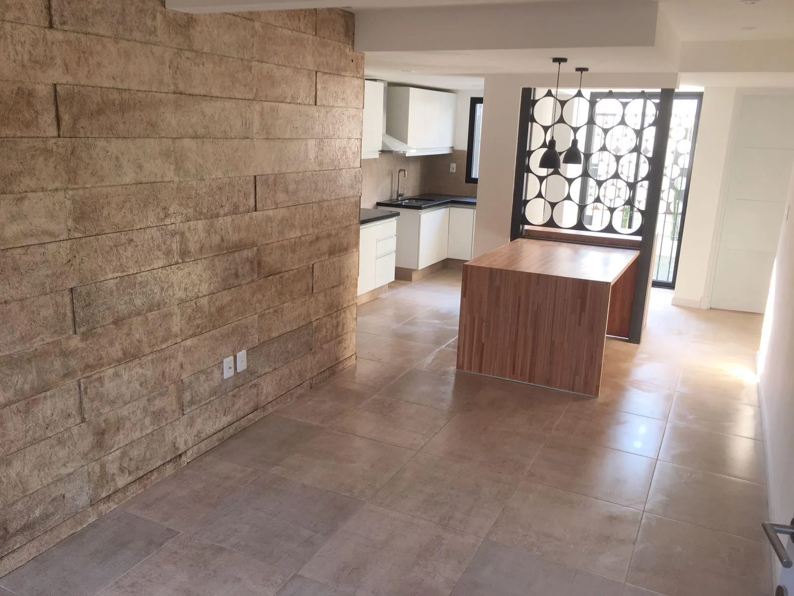 Desde allí se ingresa a la vivienda, que cuenta con living comedor con cocina integrada, en un ambiente moderno y luminoso.