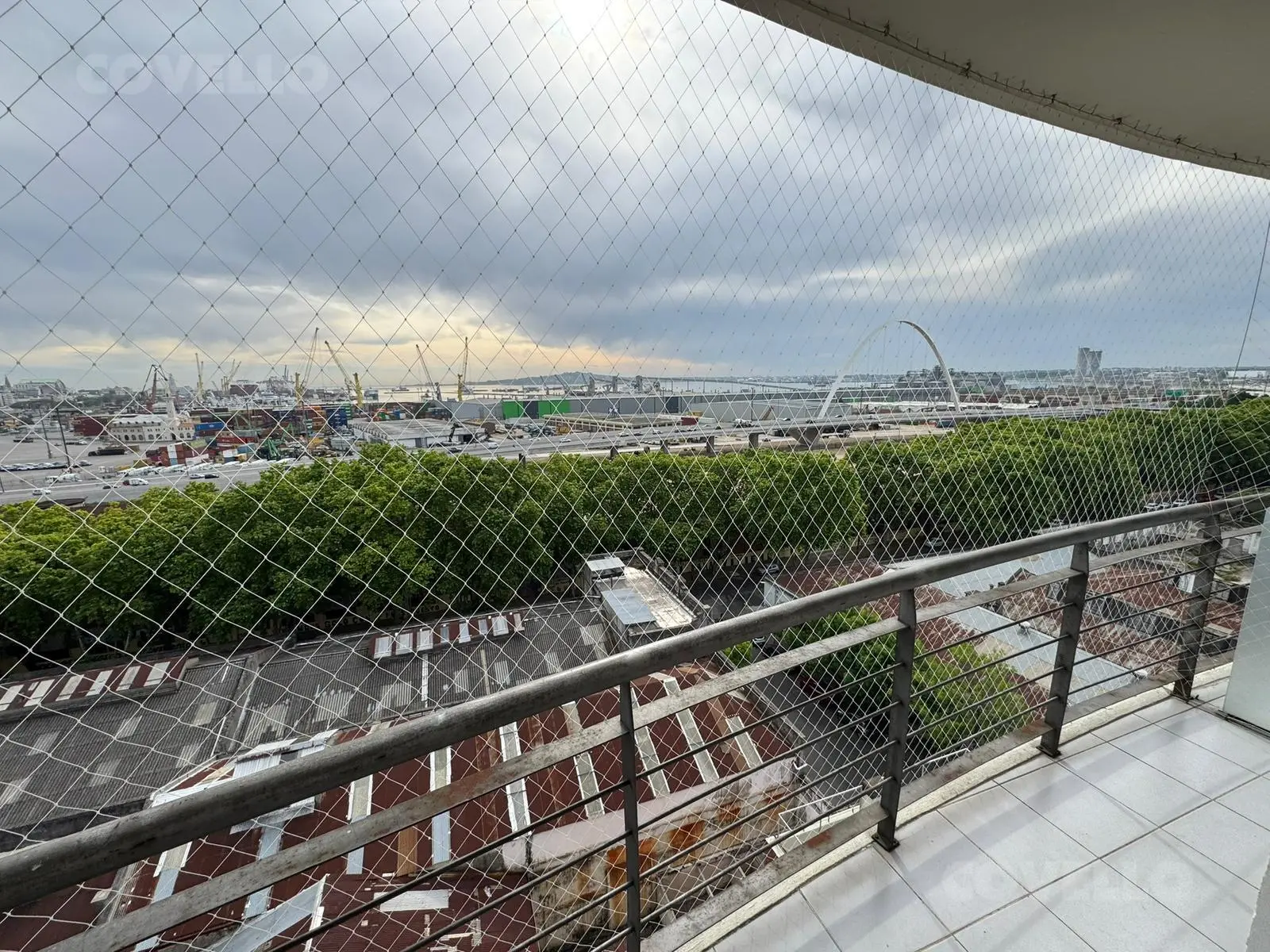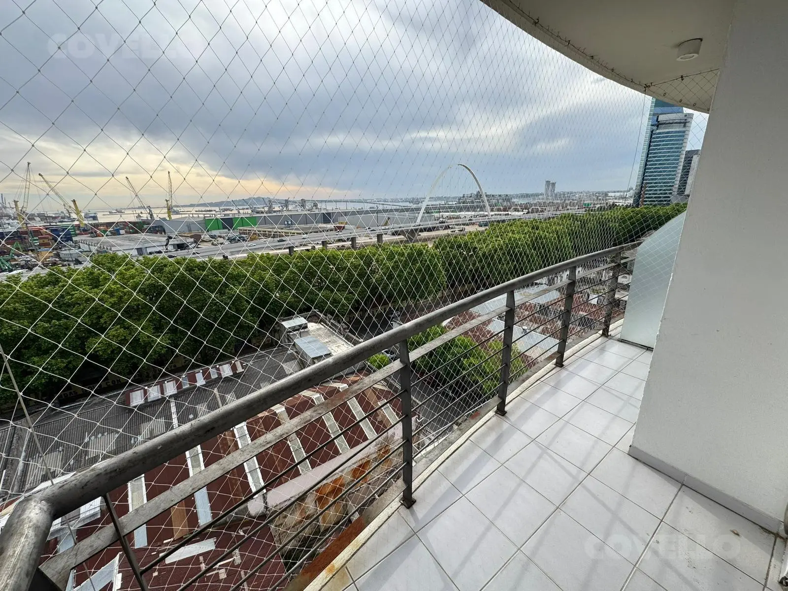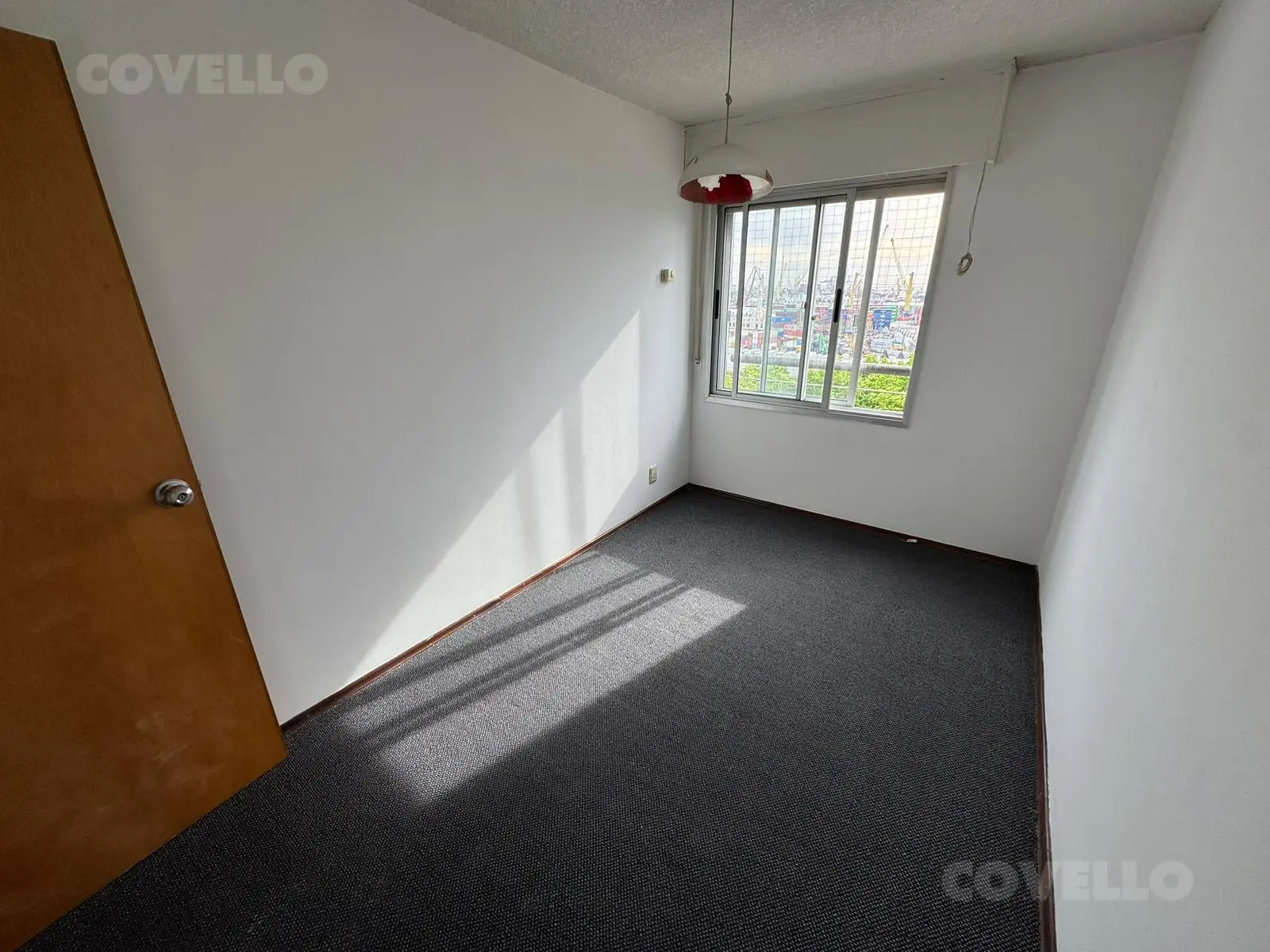 La unidad se encuentra en el piso 11, al contrafrente, con la mejor vista del edificio hacia el puerto y la bahía. Dispone de un amplio living comedor con salida a balcón, muy luminoso y con vistas totalmente despejadas. Cocina definida con placares aéreos y bajo mesada, con salida a terraza lavadero equipada con conexión para lavarropas. Cuenta con tres dormitorios y dos baños, uno completo y otro tipo toilette con ducha.