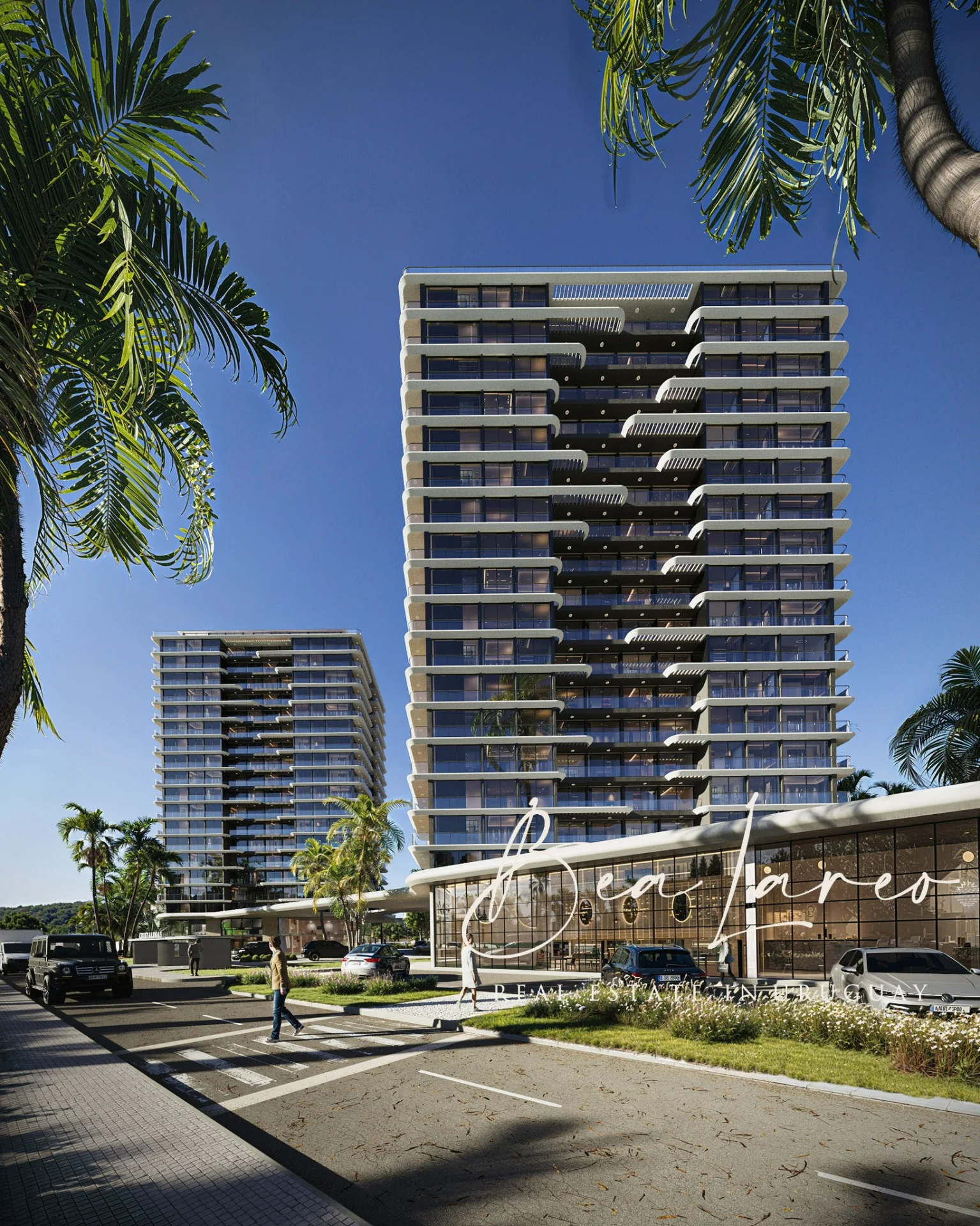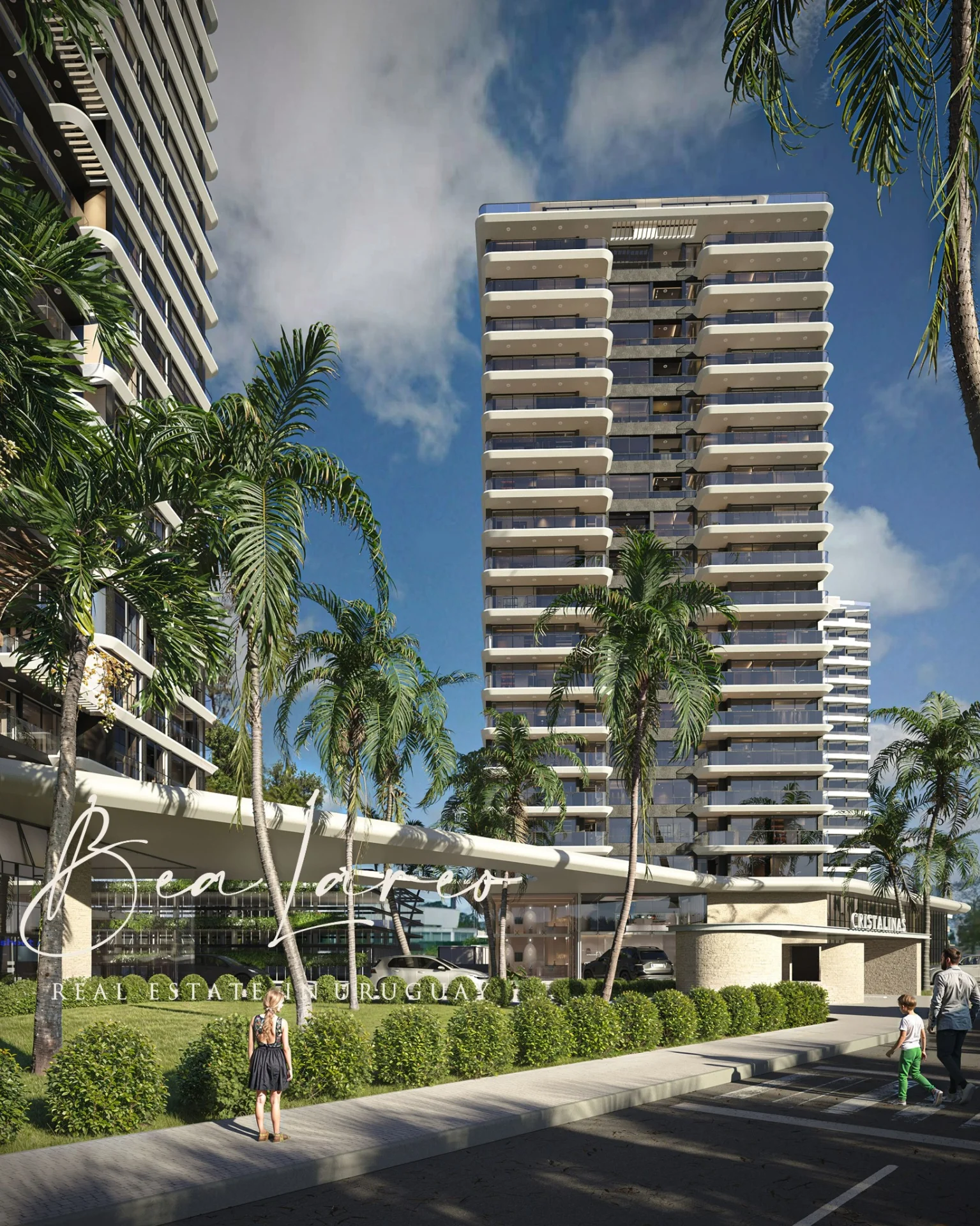 El proyecto está integrado por 2 torres residenciales de 20 pisos: Ágata y Amatista, con apartamentos de 1 a 4 dormitorios que ofrecen vistas privilegiadas al lago, al mar y al arroyo.