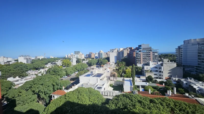 Excelente oportunidad en una de las zonas más exclusivas de Punta Carretas a metros del Club de Golf y en un piso alto que garantiza muchísima luz natural y vistas despejadas. La unidad se destaca por un cómodo living comedor con salida a un balcón principal que se encuentra cerrado ideal para aprovecharlo todo el año y una cocina definida muy funcional con gran capacidad de guardado en placares. Cuenta con tres dormitorios luminosos todos con sus respectivos placares empotrados dos baños y una terraza adicional muy amplia al contrafrente. El apartamento está equipado con equipos de aire acondicionado y dispone de un garaje independiente amplio lo que asegura total comodidad para vehículos grandes.