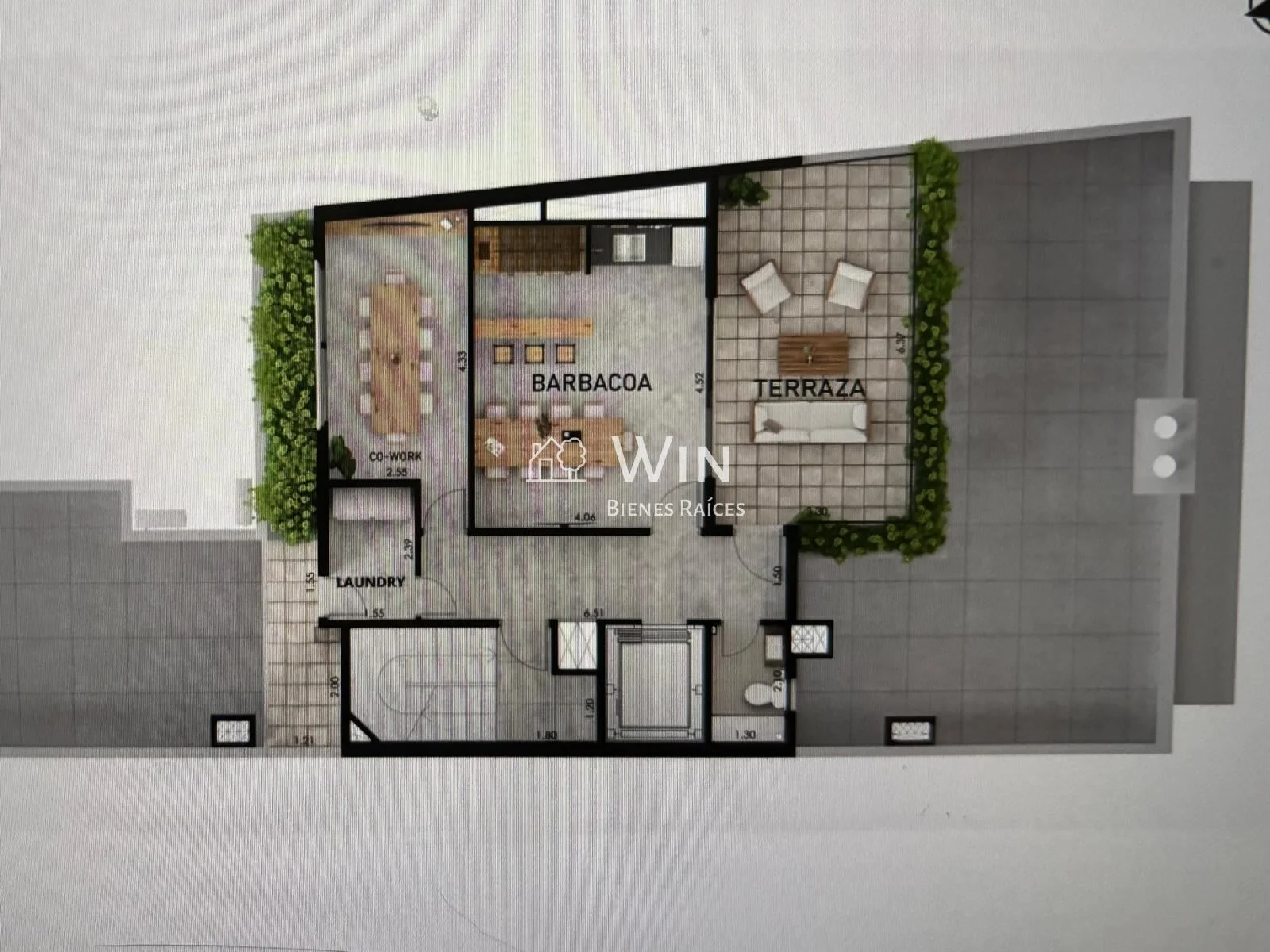 La distribución incluye una cocina integrada comodo dormitorio y un baño completo , con un total de 47 m2, de los cuales 44 m2 son cubiertos y 3 m2 descubiertos. Entre sus características destacadas se encuentran un lavadero en el ultimo piso y un salón multiuso con parrillero ideal para reuniones. .Cuenta con la opcion de adquirir cochera ,con la posibilidad de que sea cubierta, semicubierta o una incluso individual con entrada independiente.