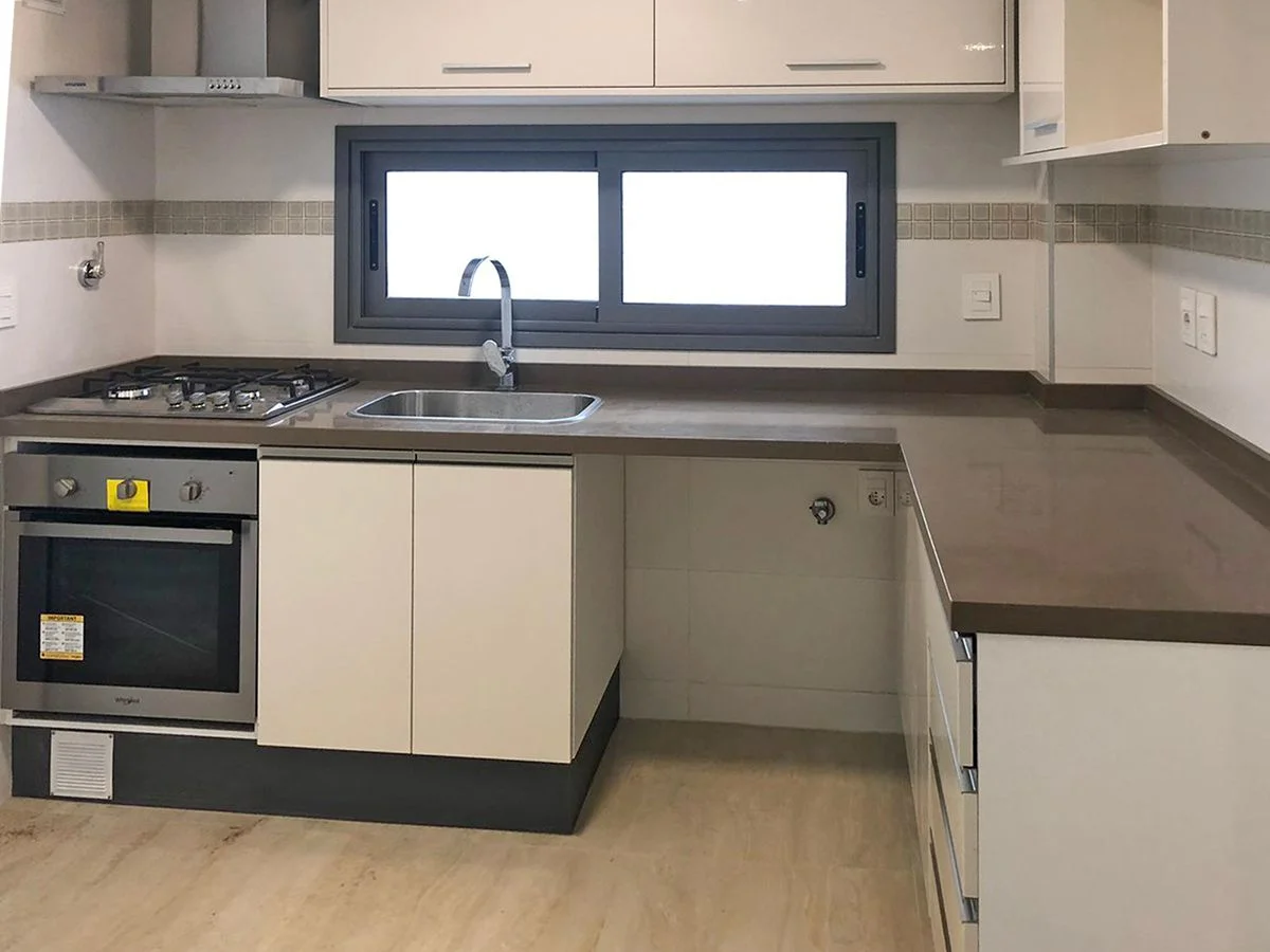 Living comedor. Toilette. Dos dormitorios, principal en suite con vestidor y 2 baños completos. Incluye garaje. Seguridad 24 h, reja de acceso y portero eléctrico peatonal.