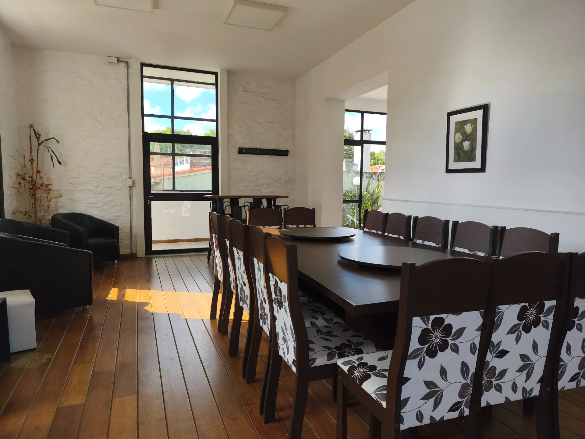 El complejo posee un acogedor SUM con parrillero, cámaras de seguridad y cocheras en alquiler disponibles.