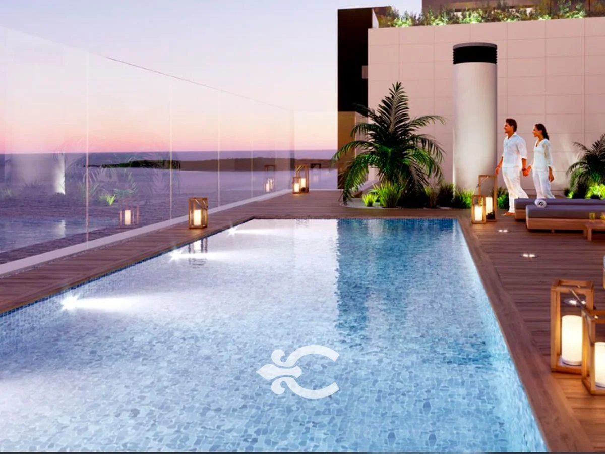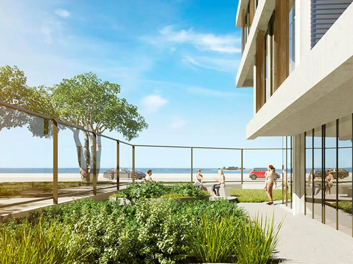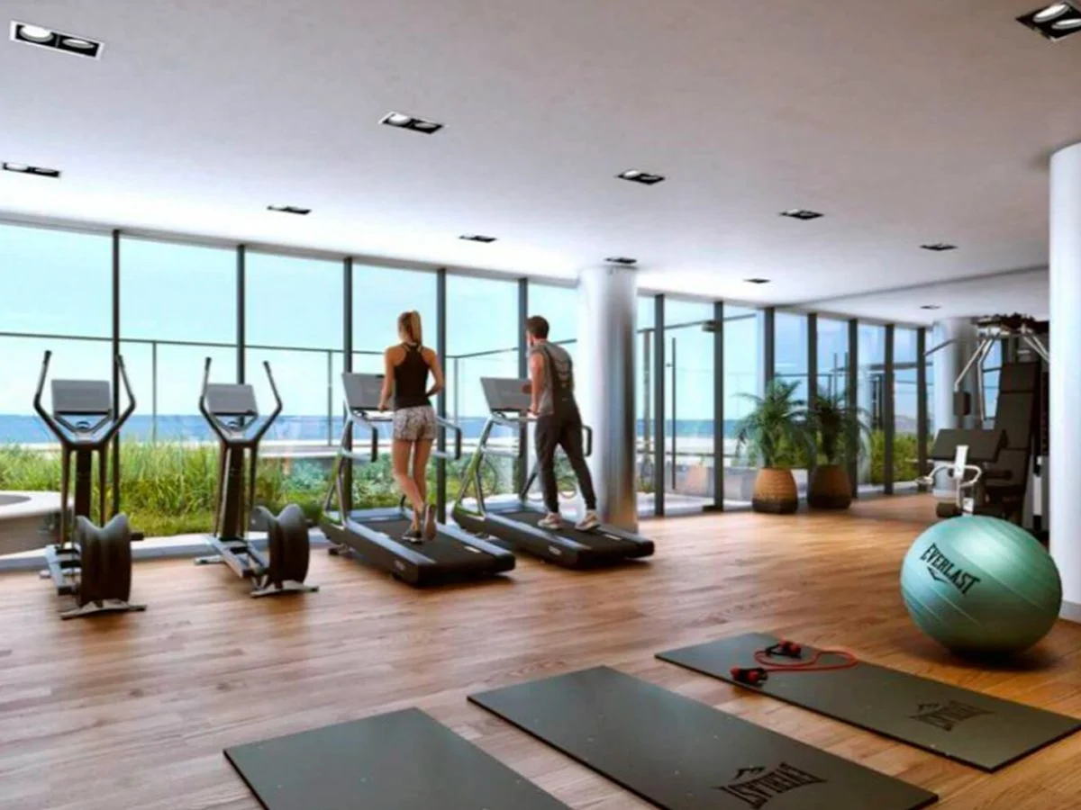 Amenities: área de parrilleros, solarium, piscina climatizada con vista a la playa, hidromasajes, barbacoa cerrada, salón de fiestas, área de juegos infantiles, gimnasio, vestuarios, lavadero, espacios verdes y cocheras. Cerramiento perimetral, videovigilancia, portería 24h y control de acceso inteligente.