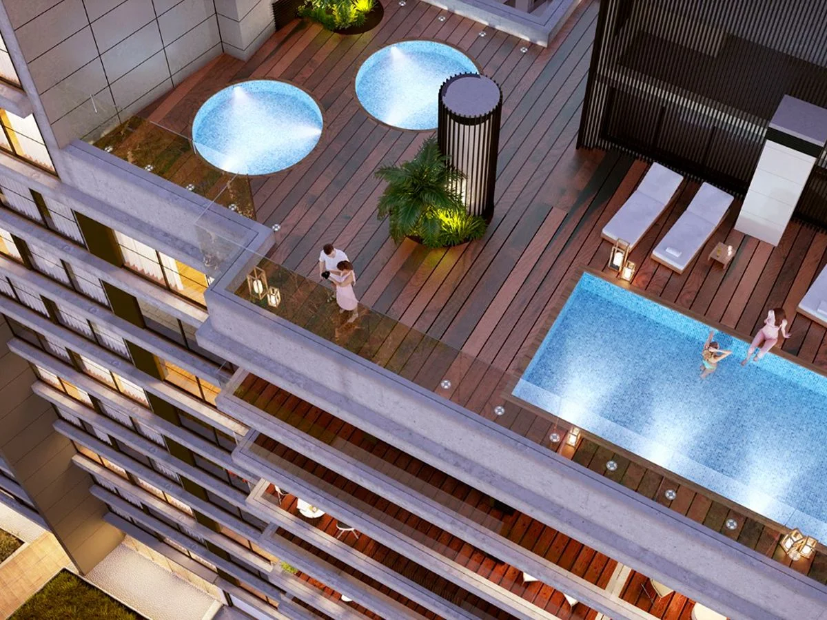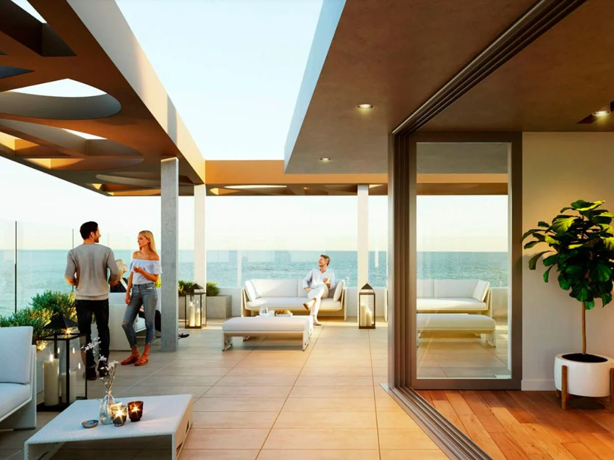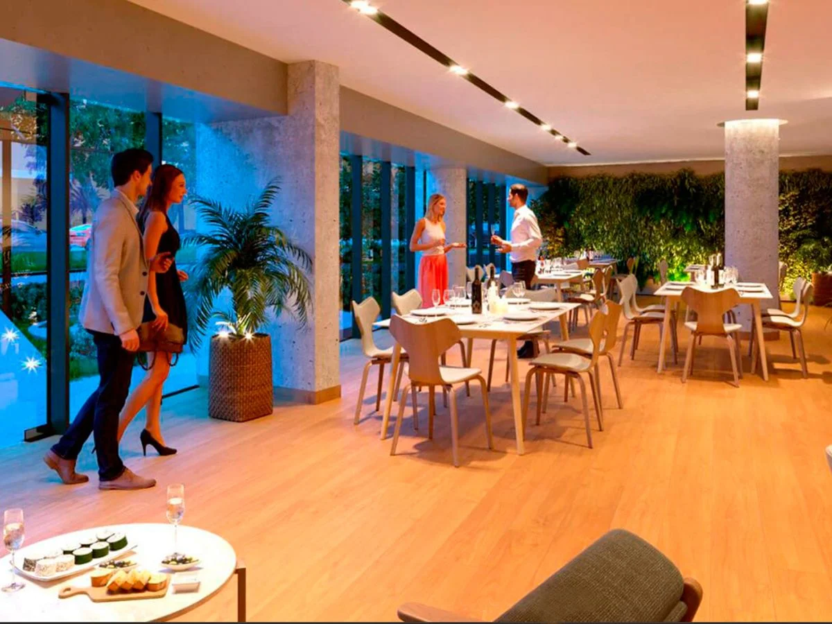 Amenities: área de parrilleros, solarium, piscina climatizada con vista a la playa, hidromasajes, barbacoa cerrada, salón de fiestas, área de juegos infantiles, gimnasio, vestuarios, lavadero, espacios verdes y cocheras. Cerramiento perimetral, videovigilancia, portería 24h y control de acceso inteligente.