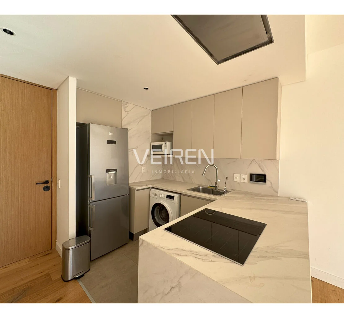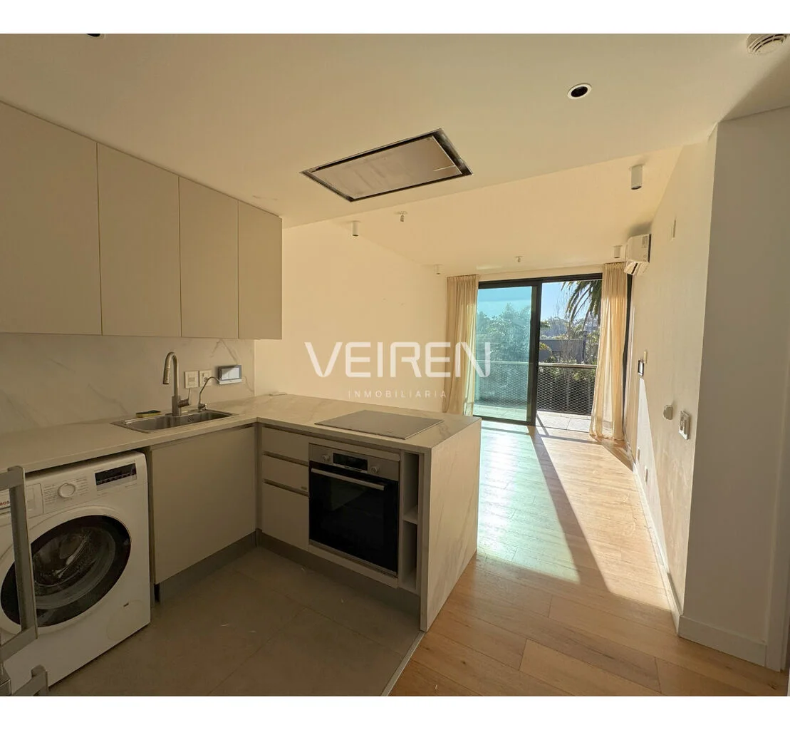 Cuenta con 1 dormitorio en suite con vestidor, 1 baño, cocina integrada con horno empotrado, anafe y campana bosch y living comedor.