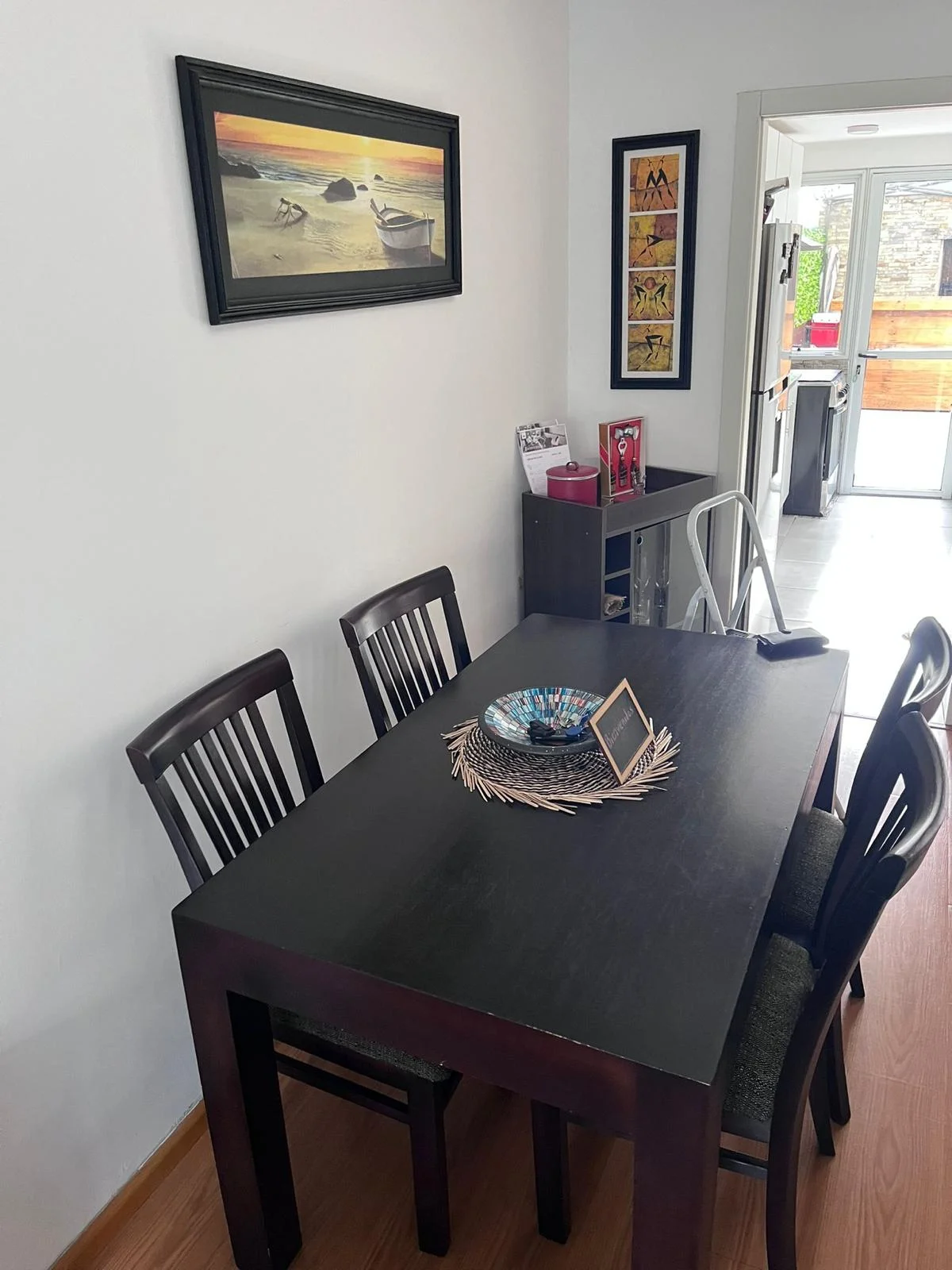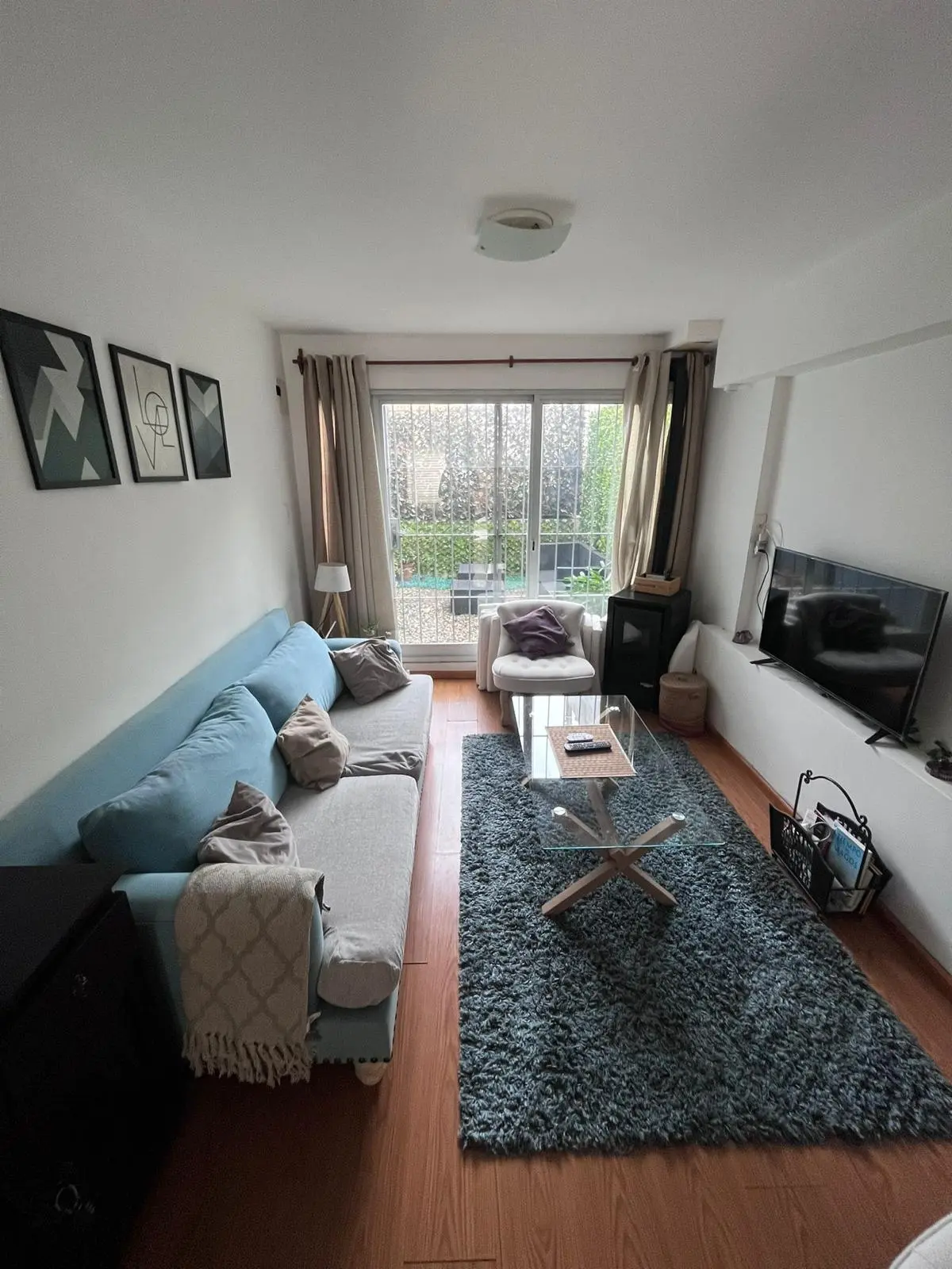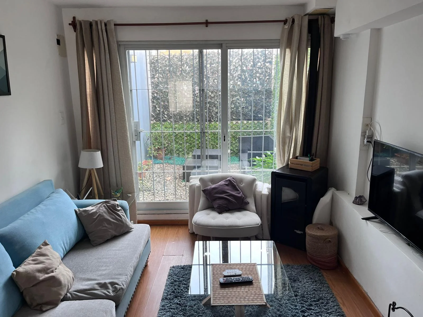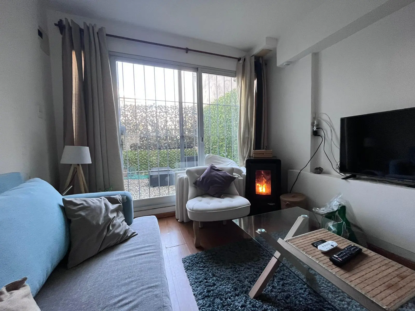 Living comedor con estufa a pellets , cocina independiente con salida a jardín con parrillero.