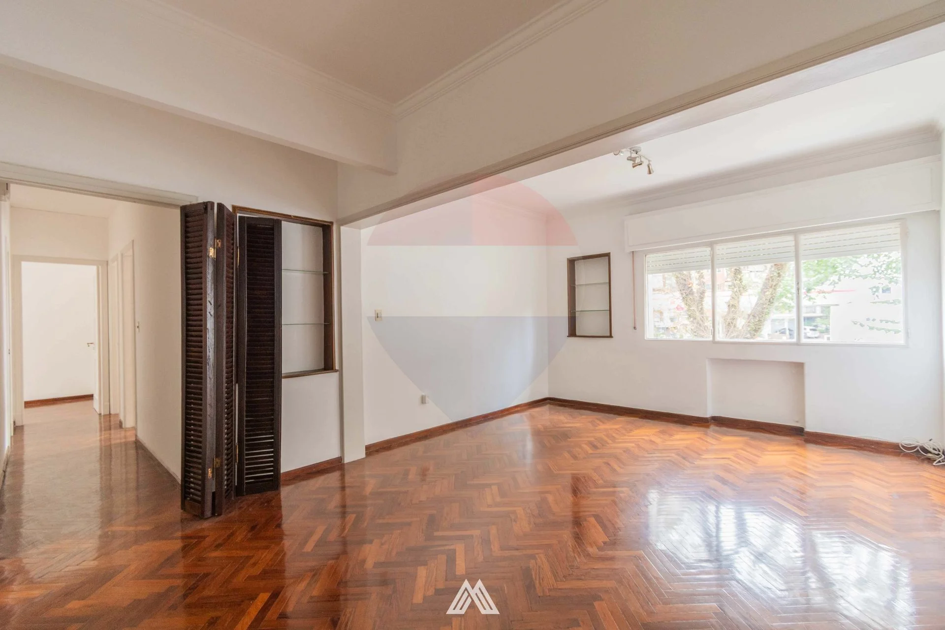 Amplio living comedor con vista al frente, pisos de parquet en muy buen estado.