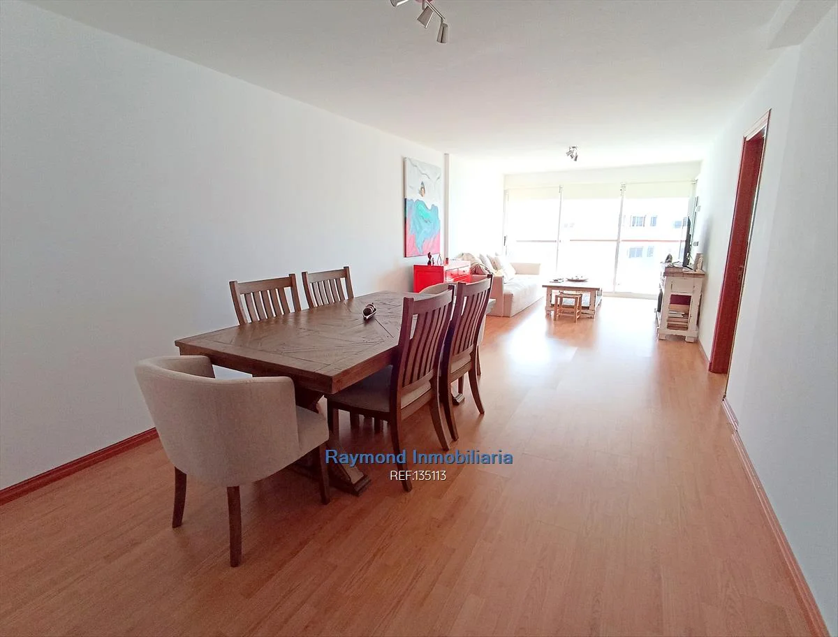 Hermoso y amplio apartamento ubicado a pasos del Mar y del Parque Biarritz. Piso alto super luminoso. Living comedor con terraza al frente, cortina de enrollar automatizada y roller, baño social, cocina definida con muy buena luz y ventilación natural, dos dormitorios en suite con placares, tres baños en total, garaje fijo, losa individual eléctrica, vigilancia 24hs. Plazo mínimo de Contrato 2 años. Gastos Comunes $ 20.000.- No deje de Verlo! Raymond Negocios Inmobiliarios.