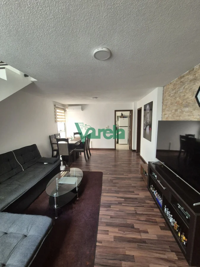 Muy buen apartamento duplex en impecable estado. El mismo se compone de amplio living comedor, cocina con mesada placares en impecable estado y baño social, en PA 2 comodos dormitorios con placares y baño principal. Todos los ambientes con AA. El edificio cuenta con salon con parrillero muy disfrutable y plaza de uso comun. Solo ANDA